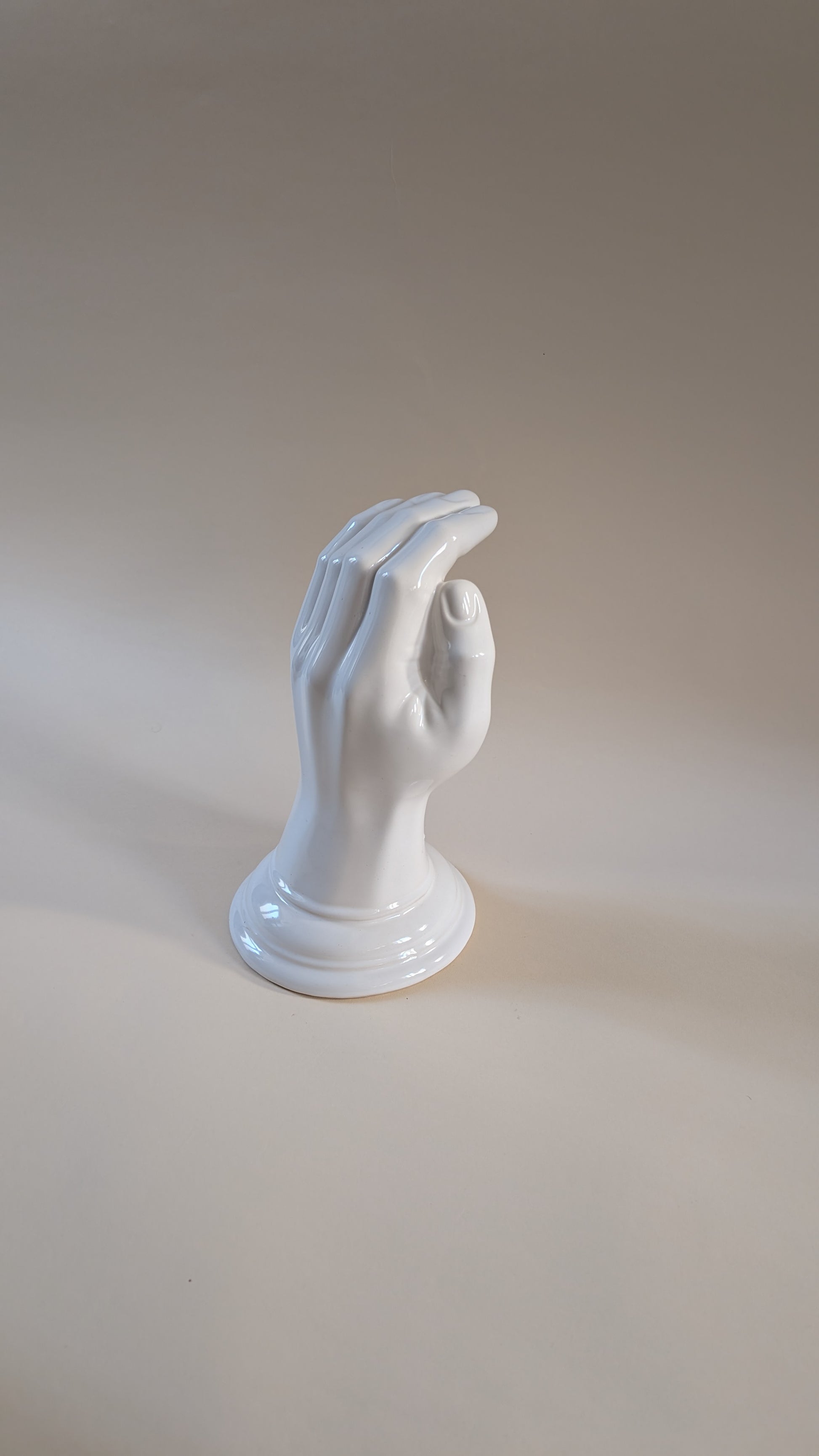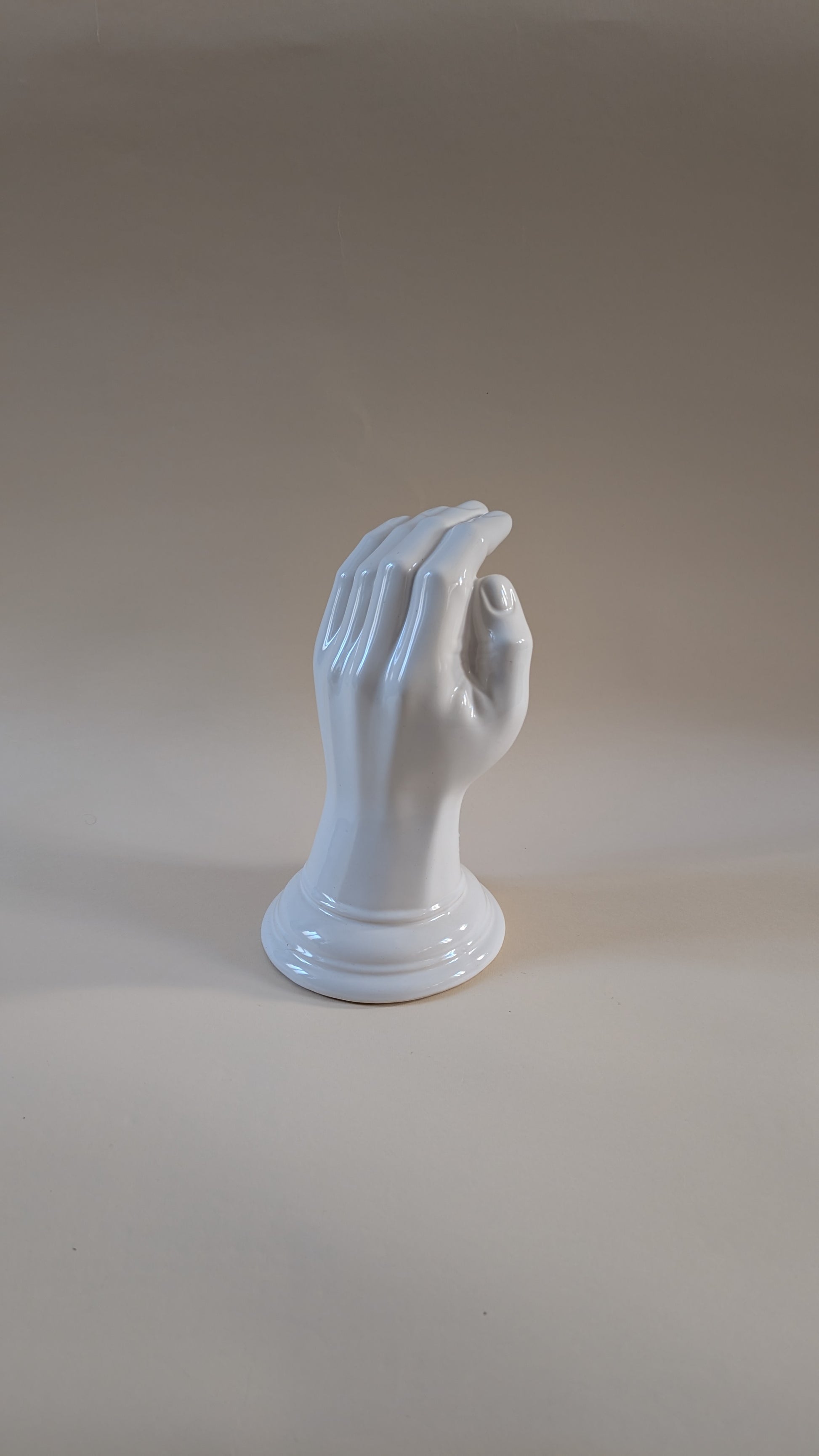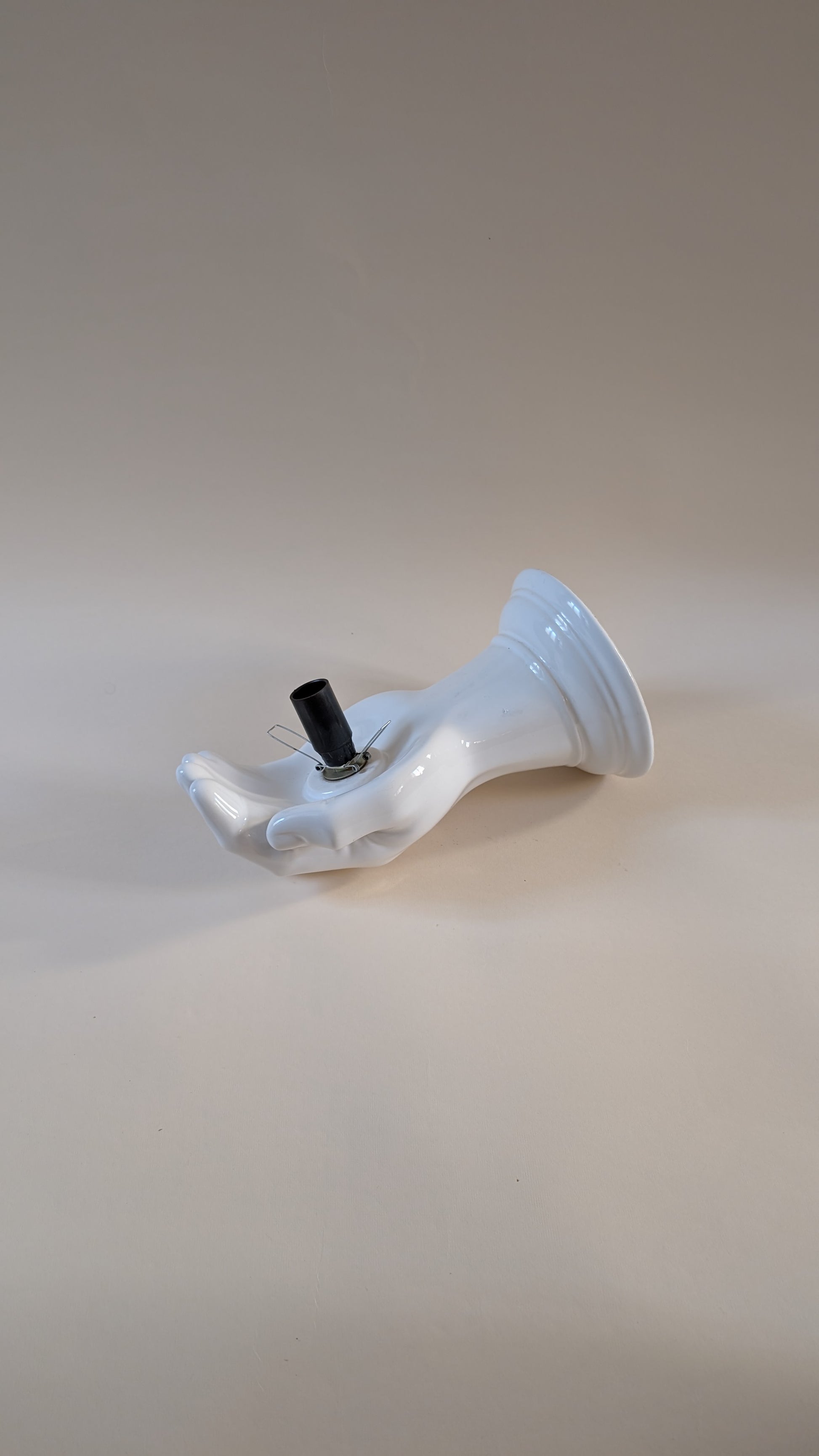 La base en céramique blanche est en parfait état, sans aucun éclat ni fissure, tandis que le globe en verre conserve toute sa transparence et sa brillance d’origine.