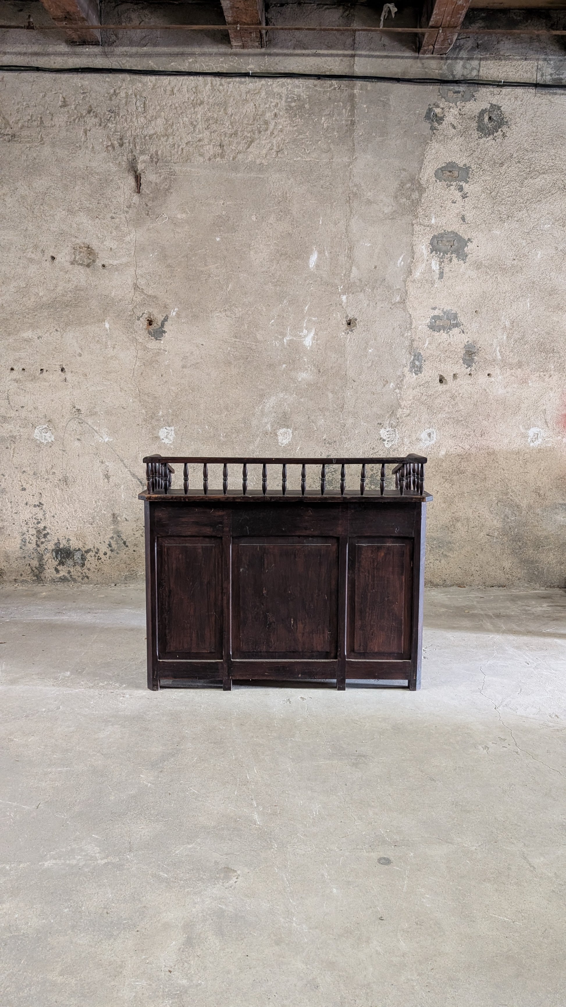 Bureau de ministre ou bureau de notaire dégage un charme historique et rustique. Il est réalisé en bois sombre et patiné (possiblement du chêne ou du noyer teinté) et présente un design caractéristique du mobilier de l'ère victorienne ou des débuts du XXe siècle.