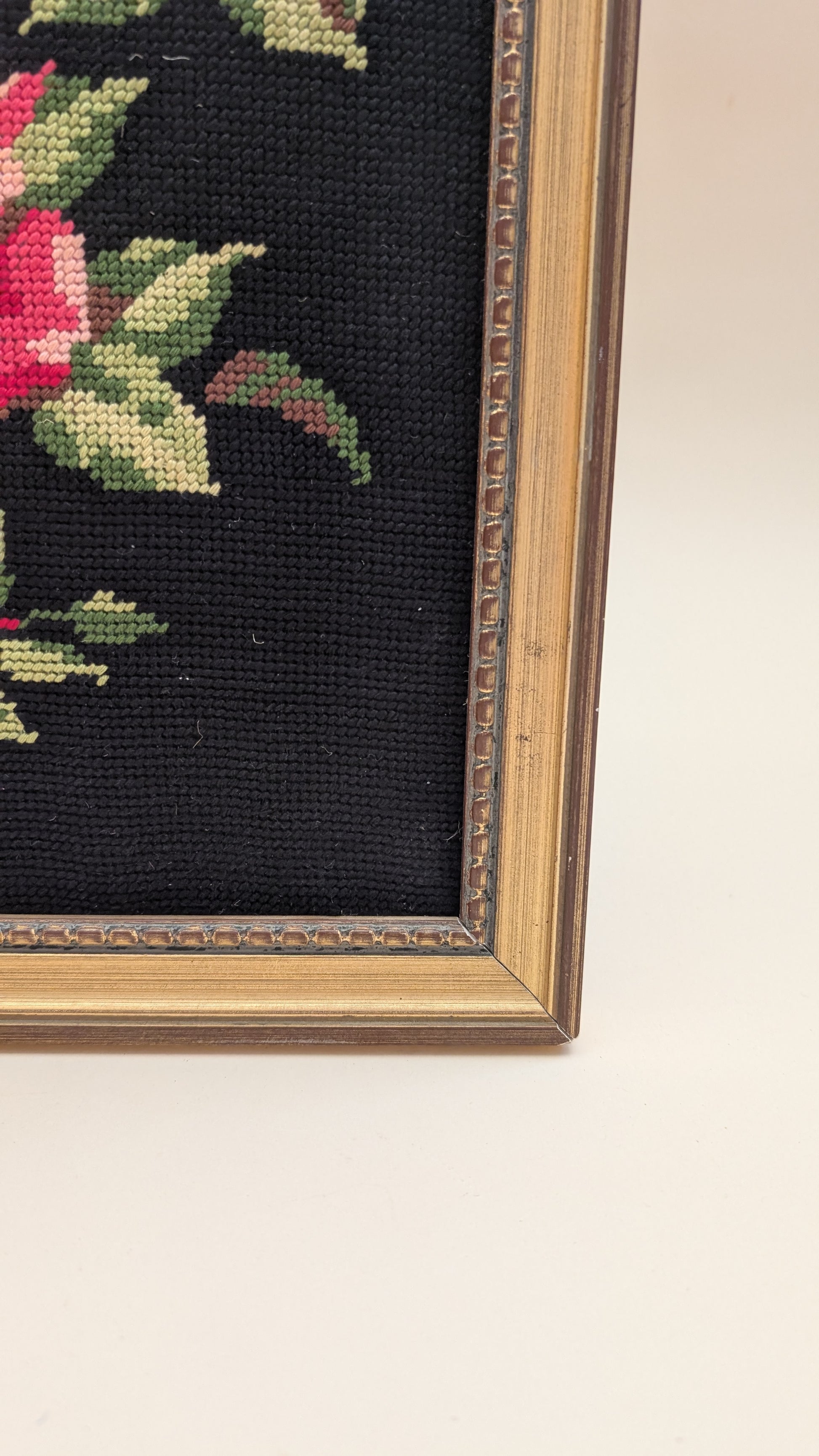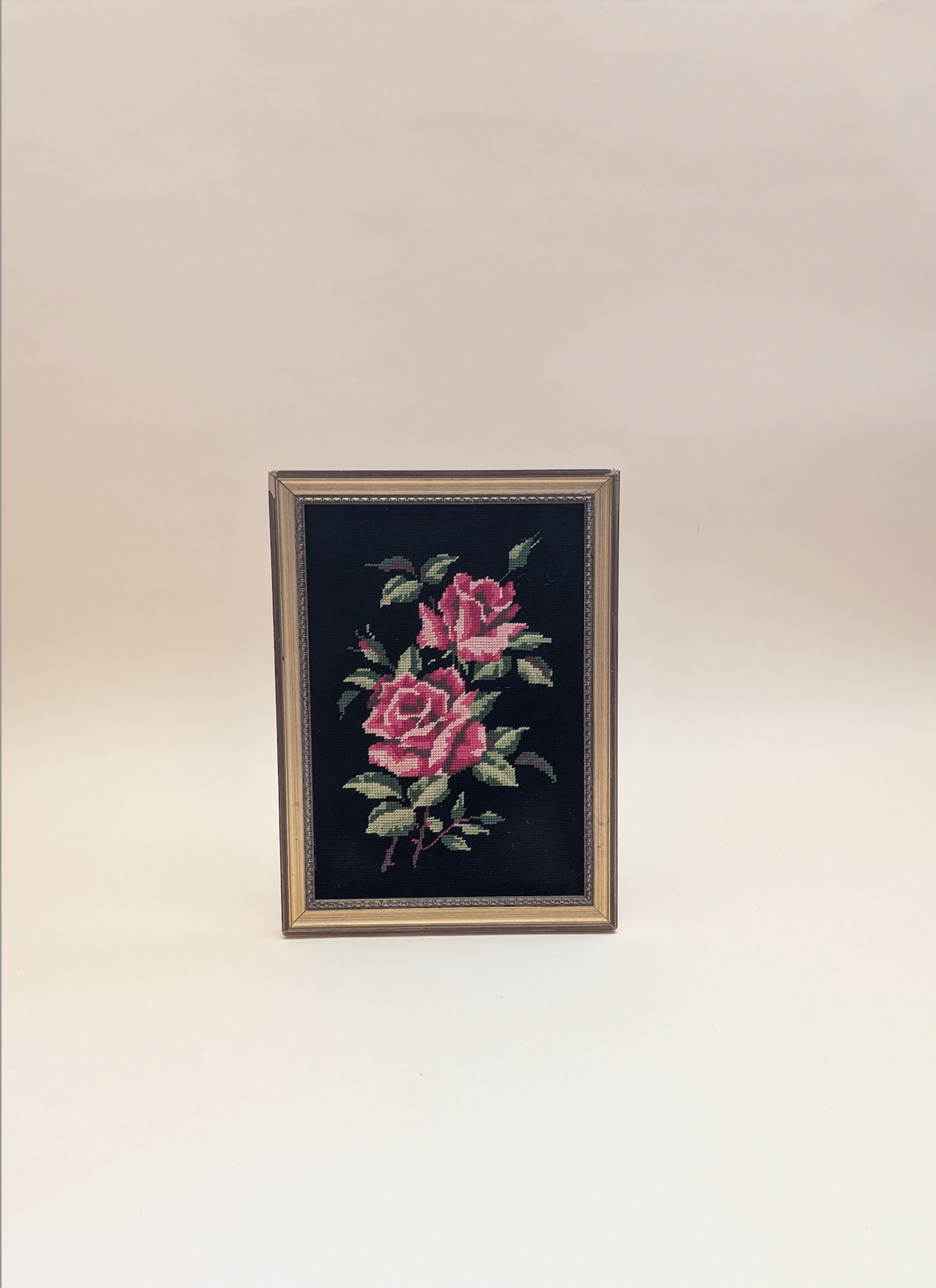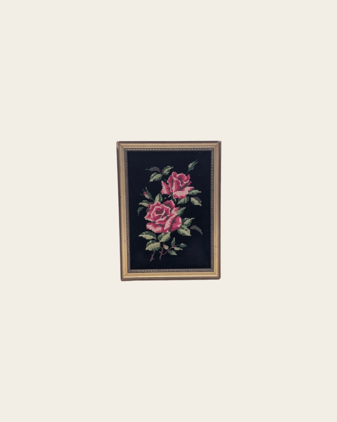 Tableau en canevas vintage, représentant un bouquet de rose sur un fond noir. Dimensions : 37 x 28 cm.