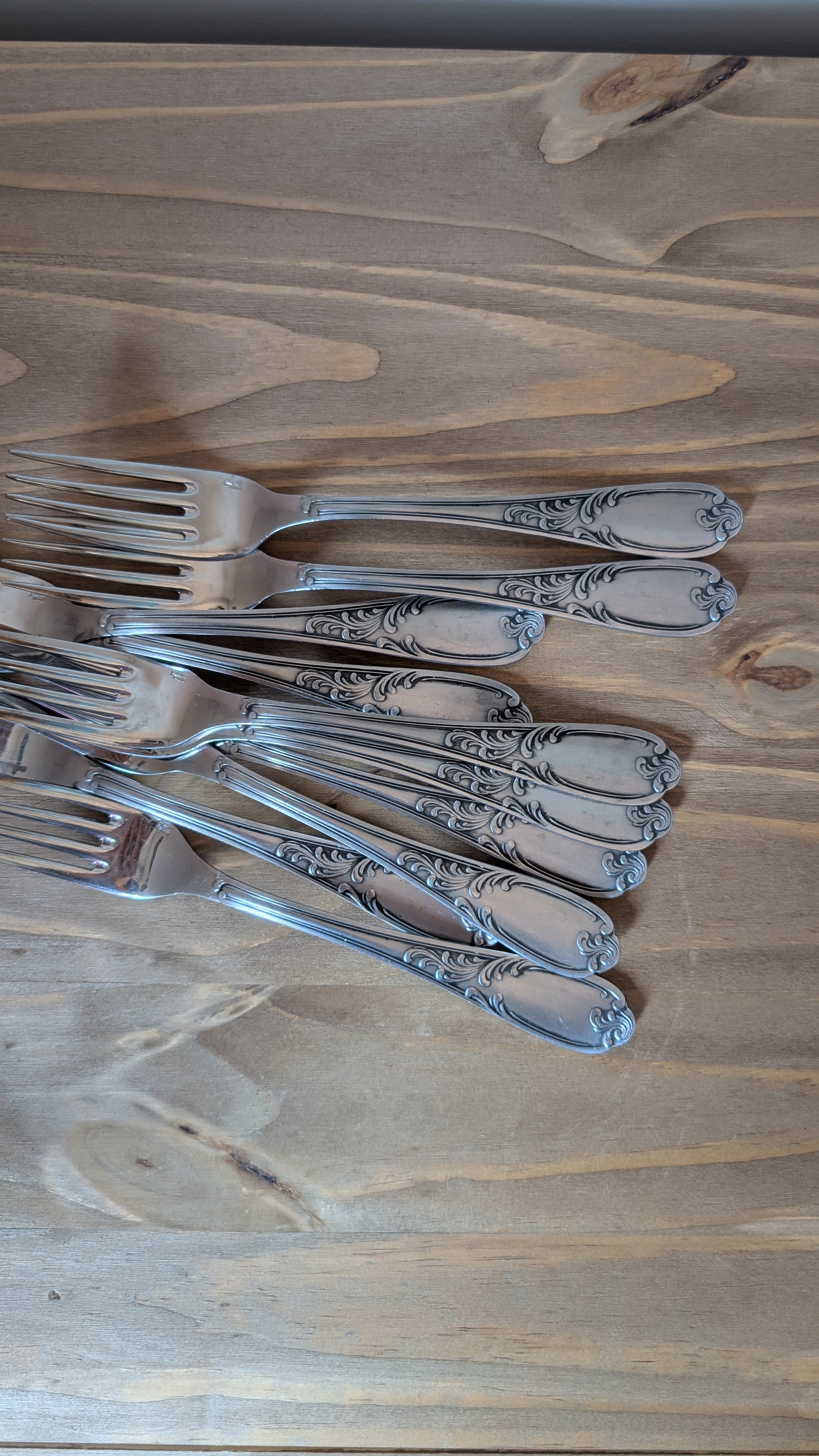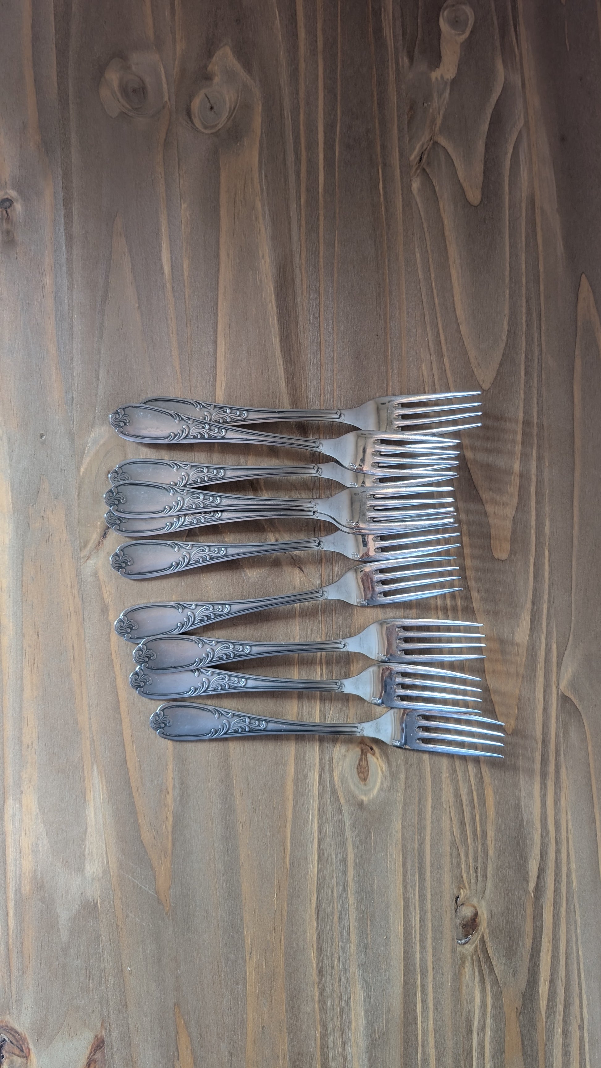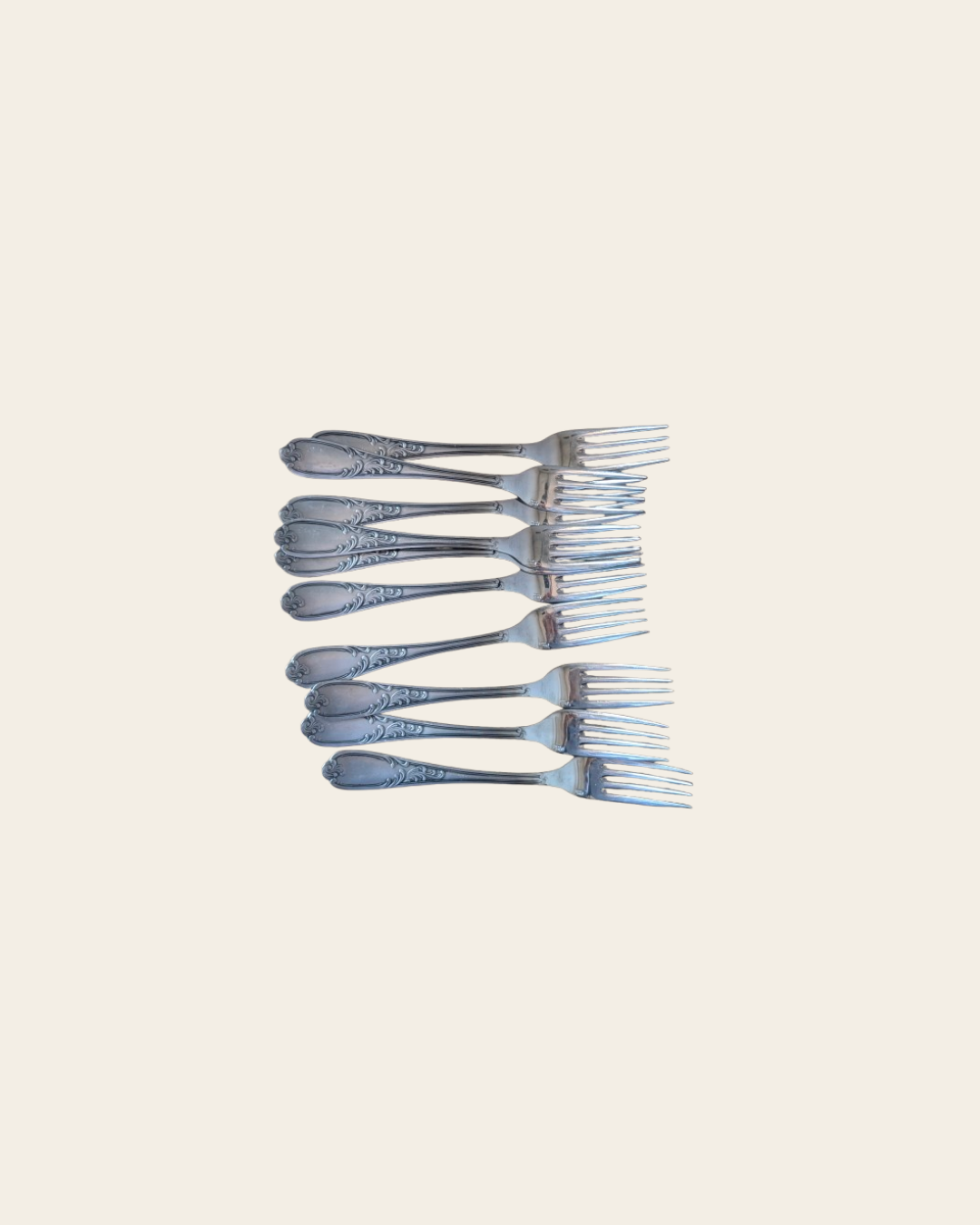 Lot de 10 fourchettes au charme d’antan, aux manches délicatement travaillés. Parfaites pour apporter une touche élégante et authentique à vos repas.