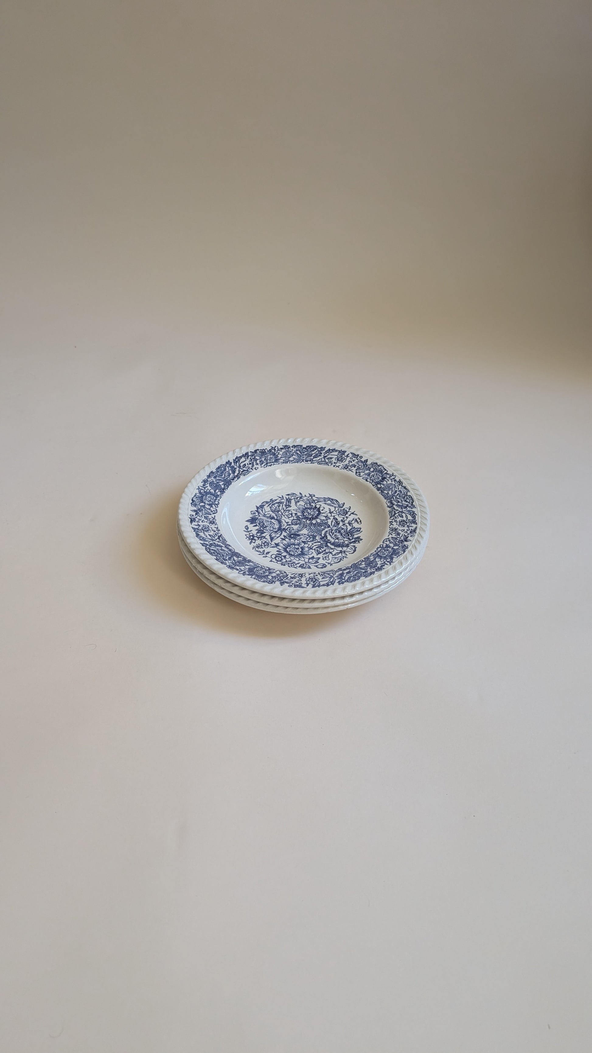 Ensemble de 3 assiettes creuses anciennes – décor bleu floral