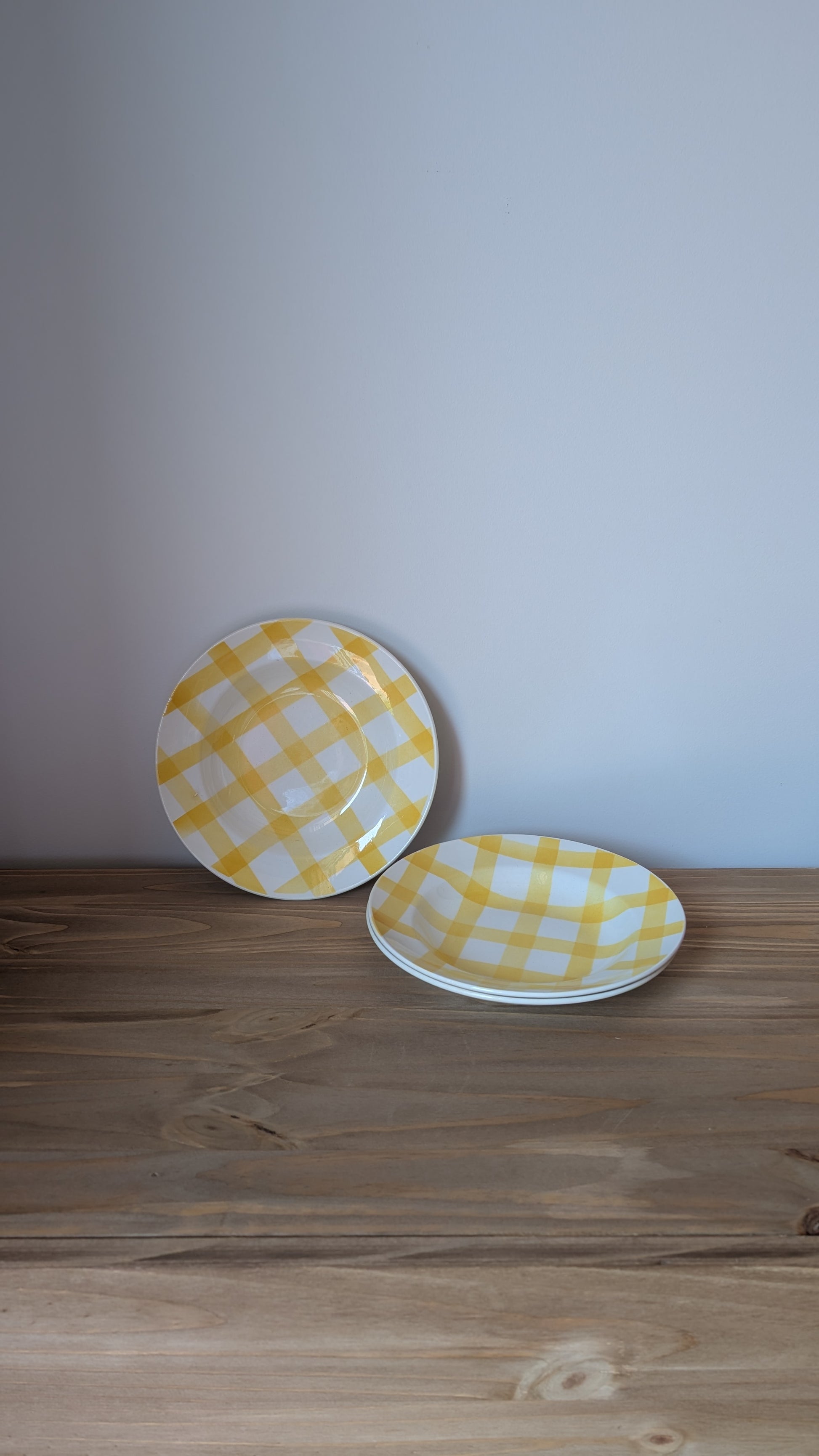 Ensemble de 3 assiettes vintage motif vichy jaune