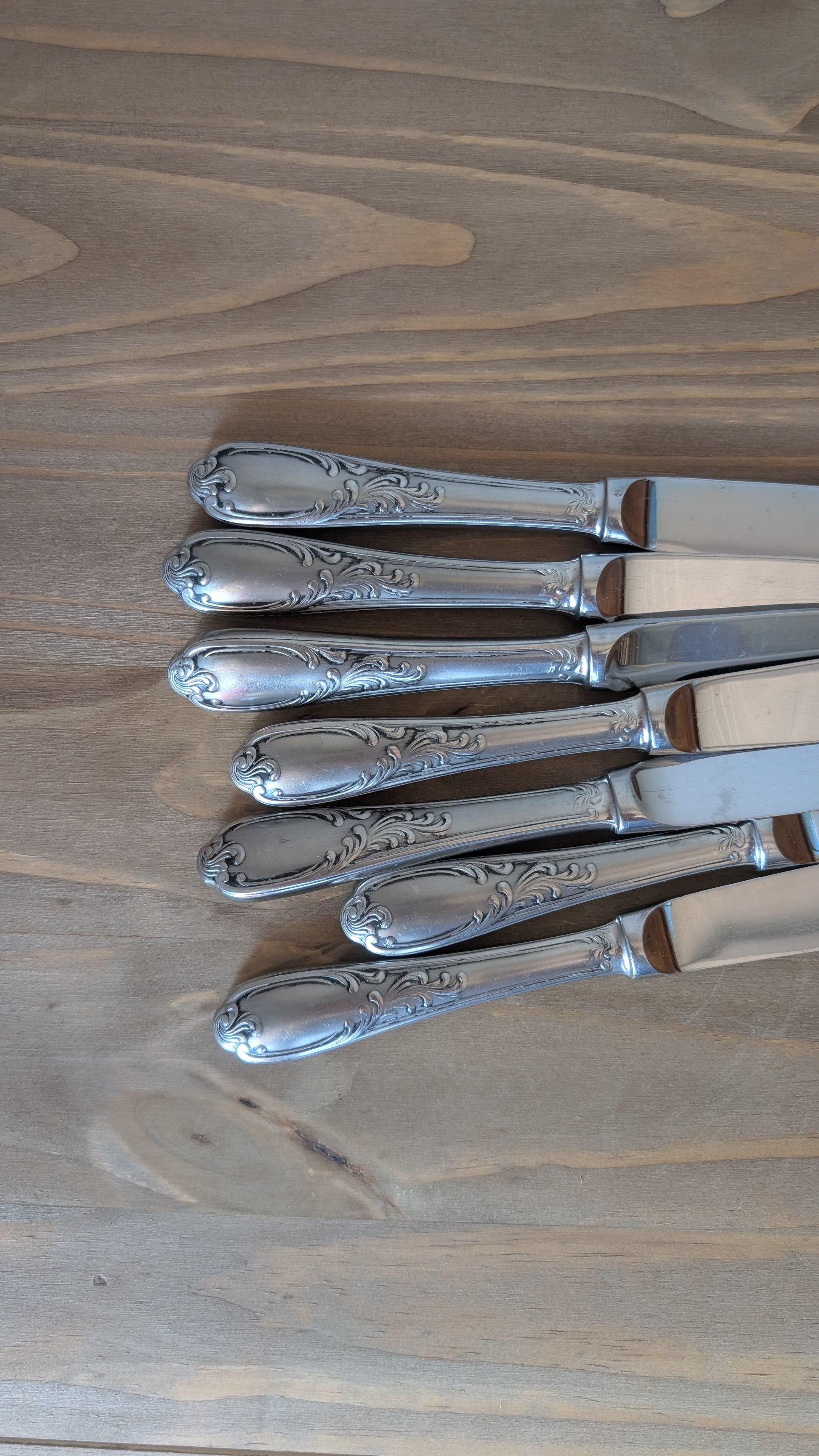 Lot de couteaux au manche finement décoré, alliant élégance et authenticité. Leur style intemporel sublimera vos repas, qu’ils soient du quotidien ou de réception.