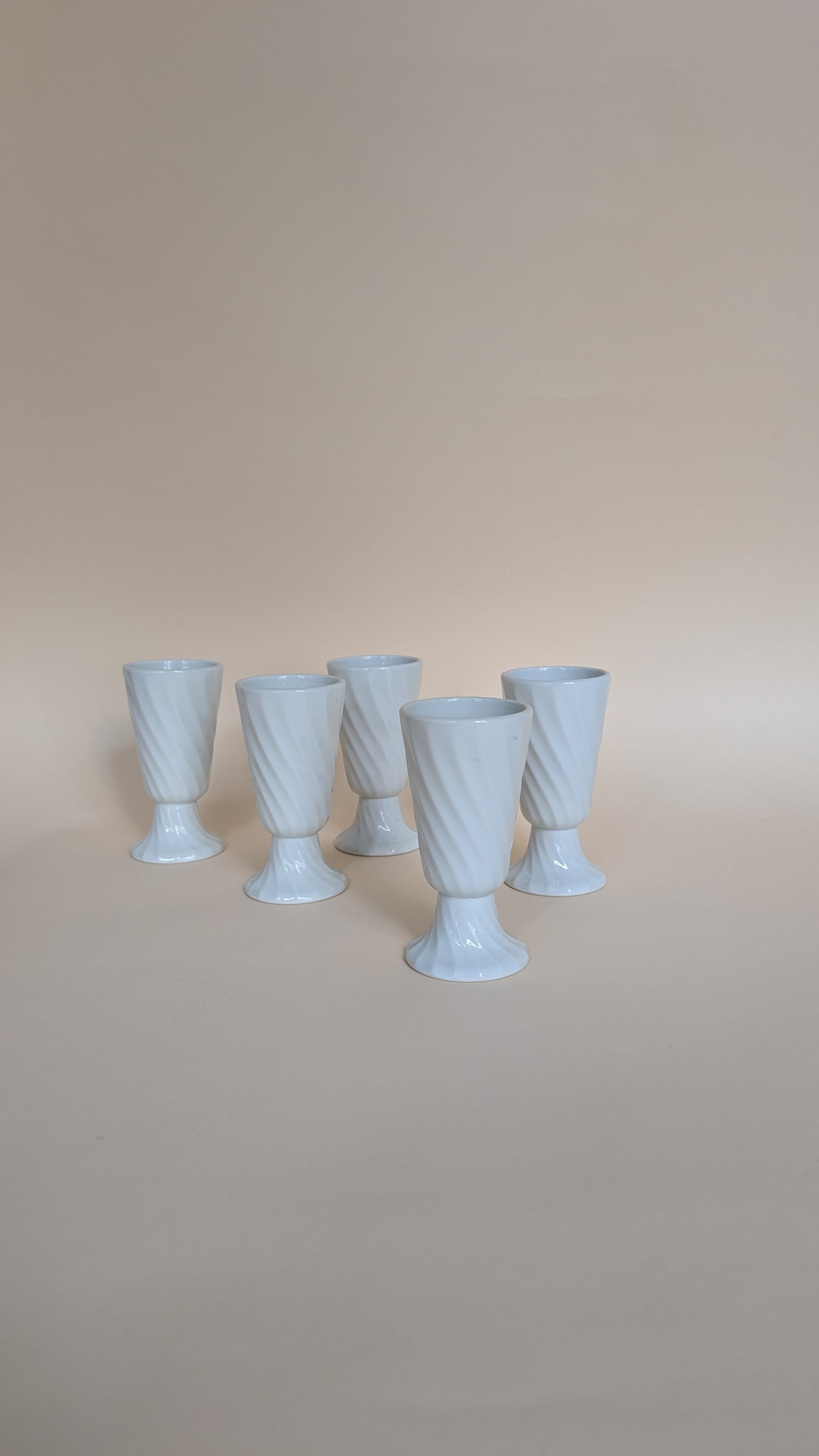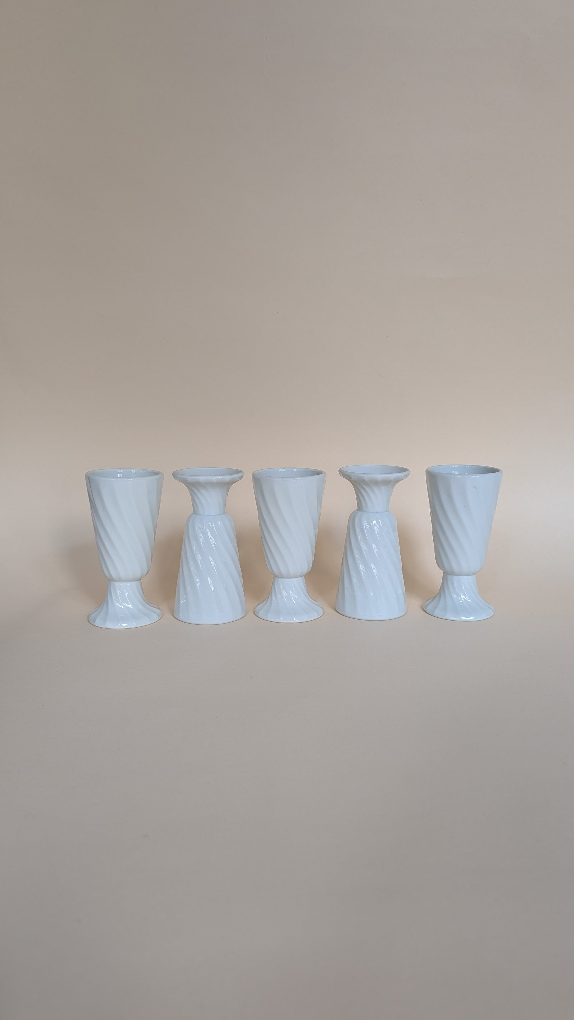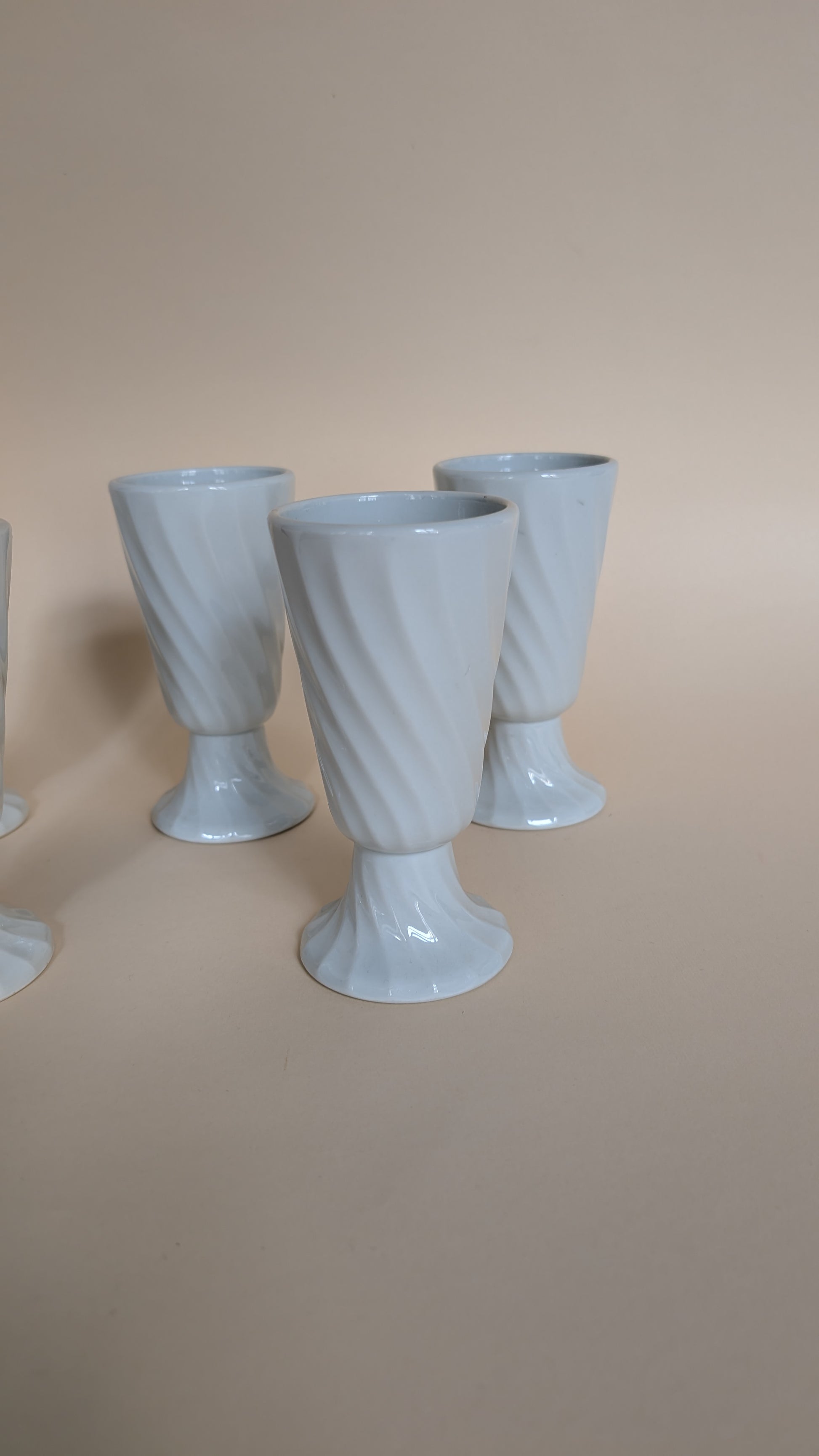 Mazagrans en céramique blanche, au joli relief torsadé qui leur donne une allure raffinée et vintage. Ils mesurent environ 14 cm de hauteur pour 7 cm de diamètre. L’ensemble est en bon état, parfait pour compléter un service ancien ou pour une utilisation décorative. Poids total : 1200 g.