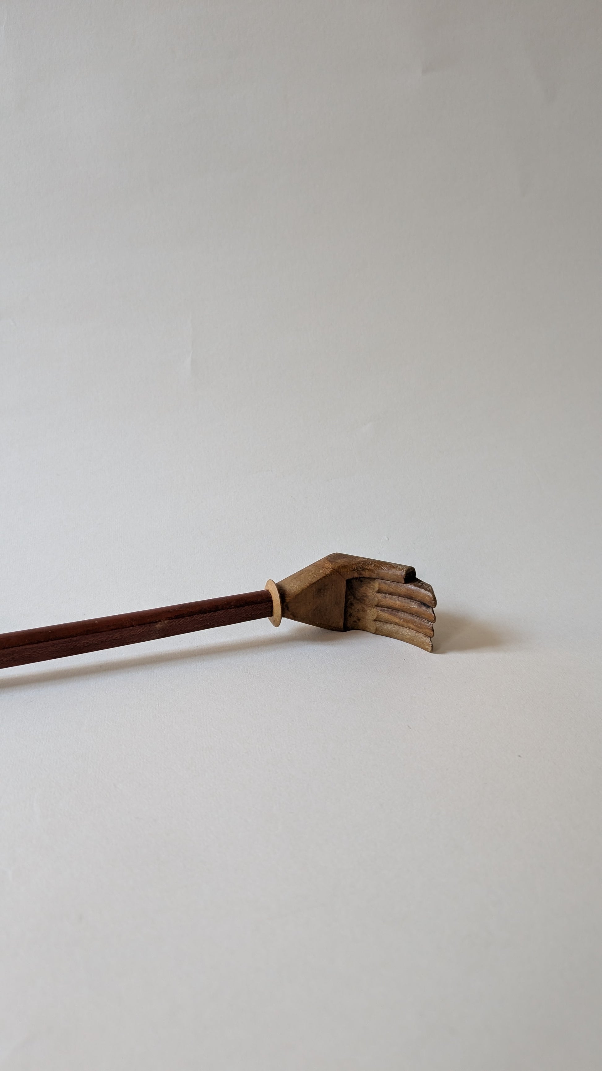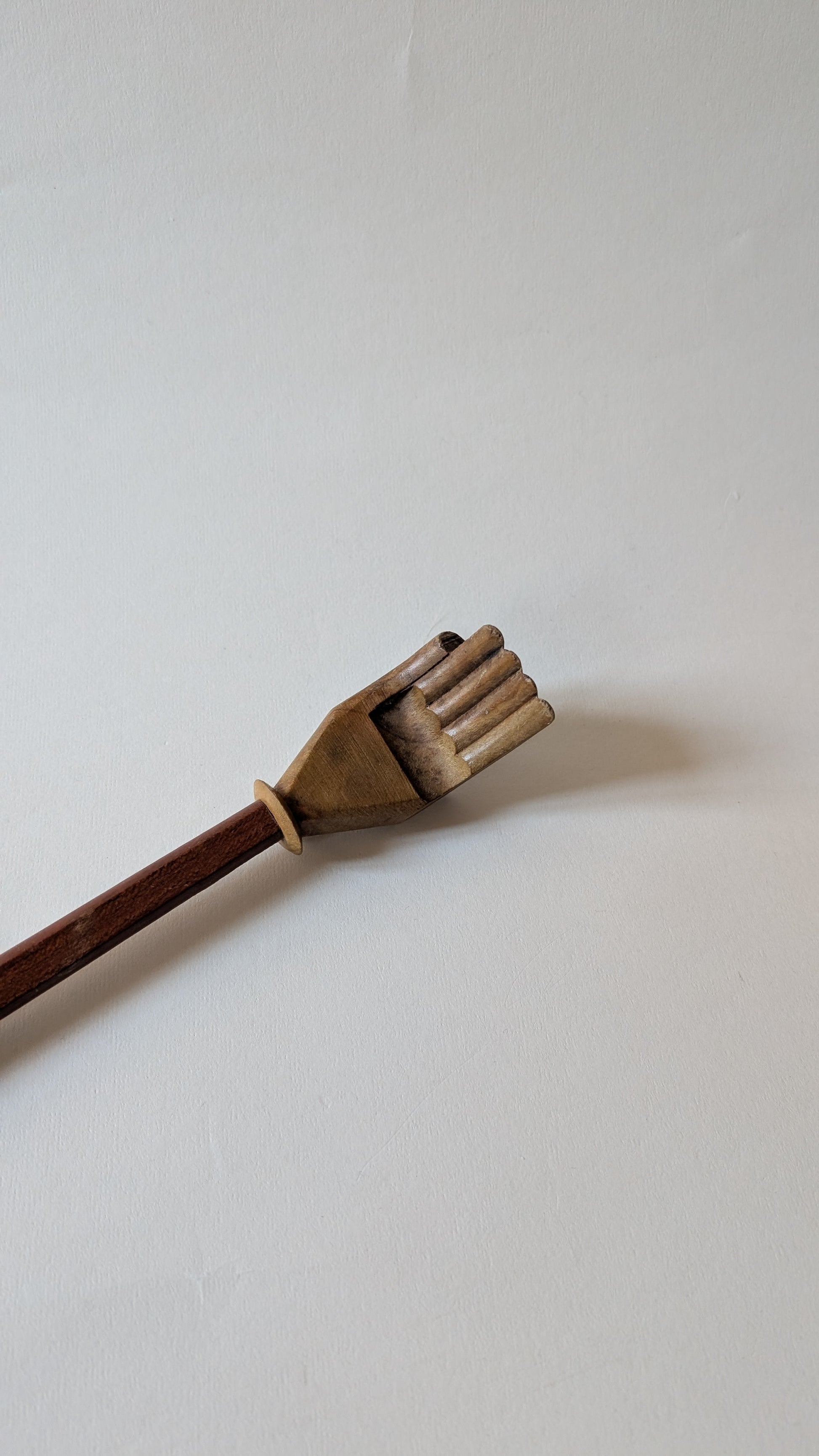 Gratte-dos en bois de 43 cm, équipé d’une extrémité sculptée en forme de main. Léger (100 g) et facile à utiliser, il permet d’atteindre les zones du dos difficiles d’accès. Manche long et droit, fabrication en bois.