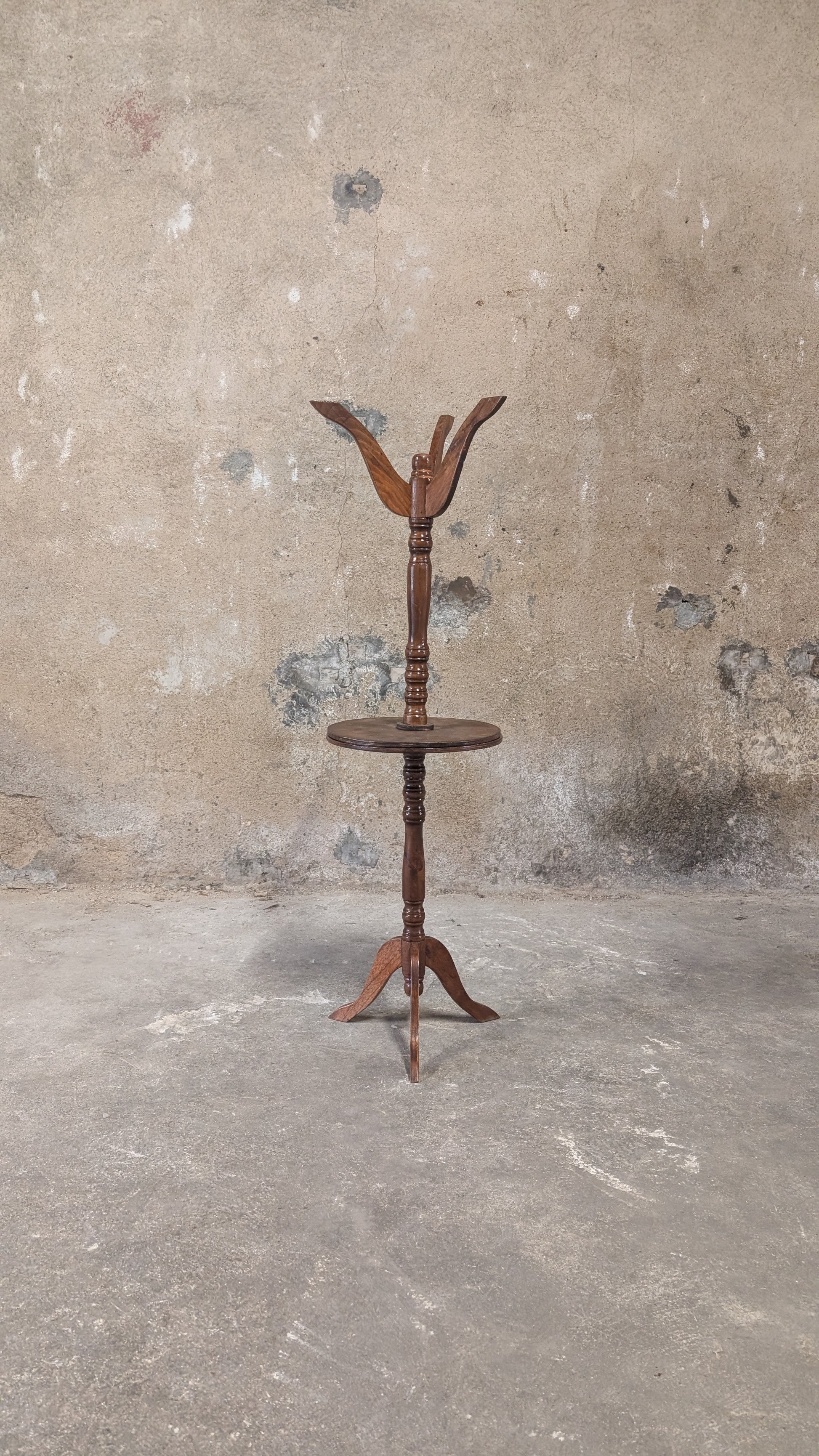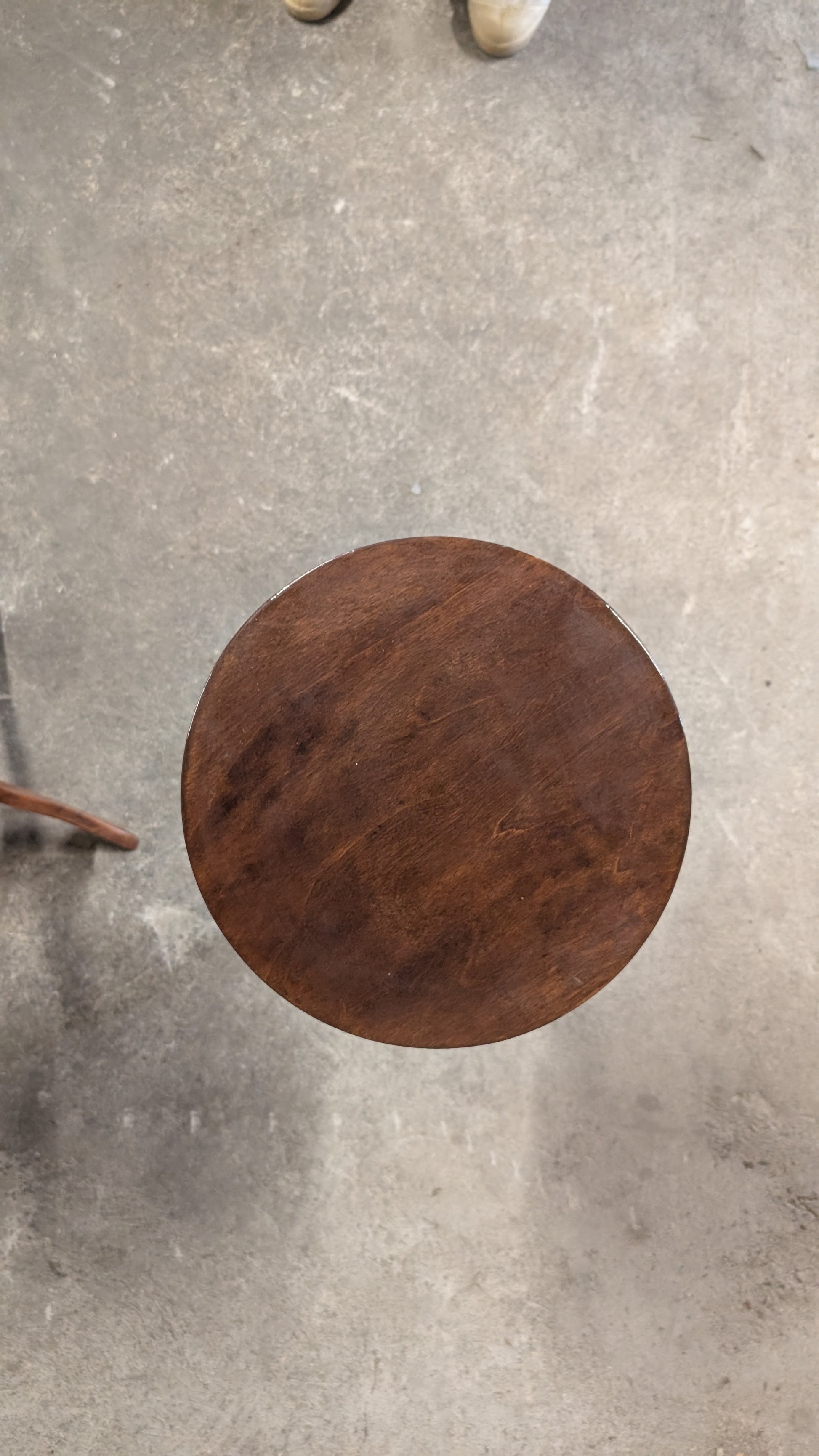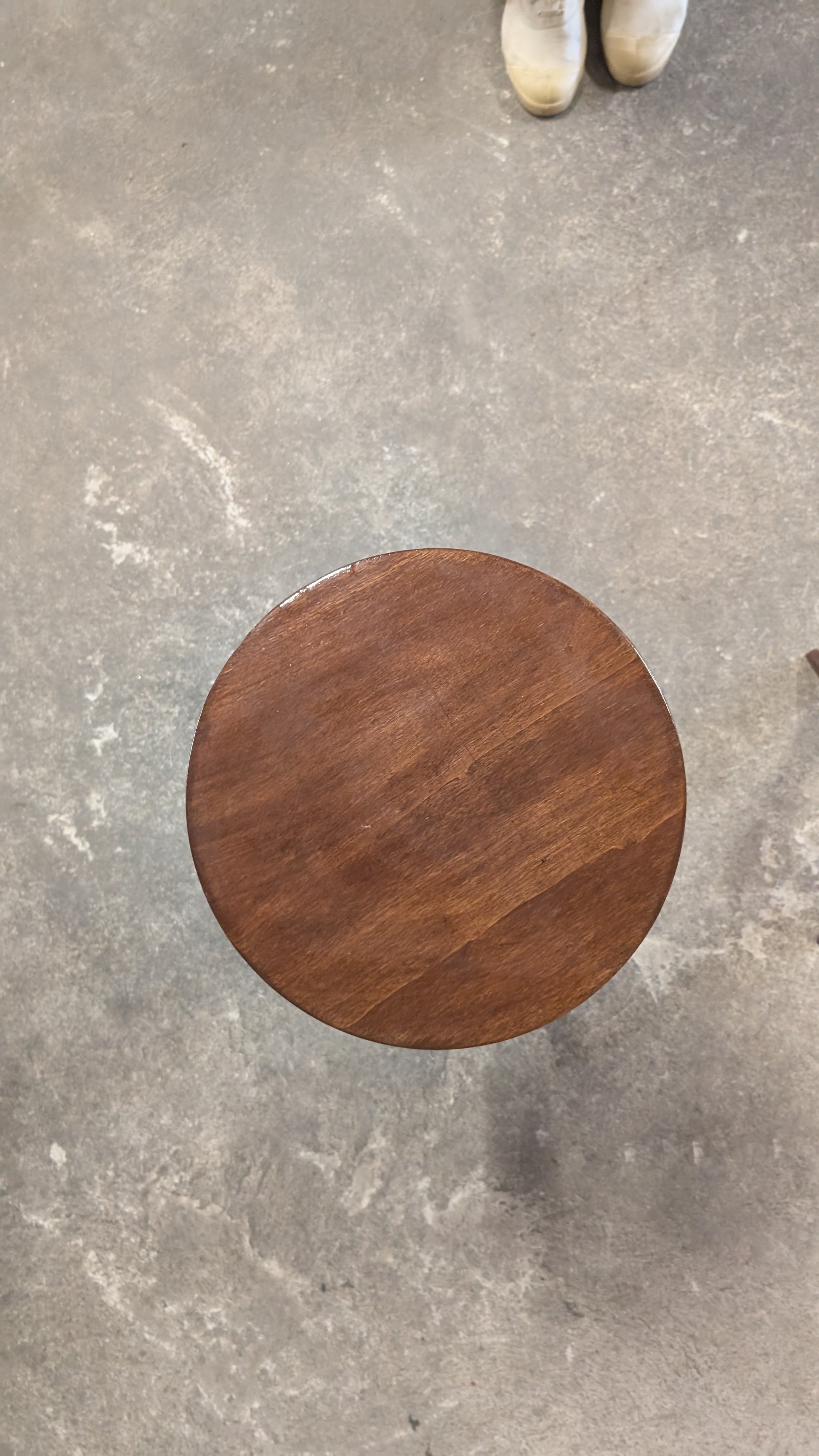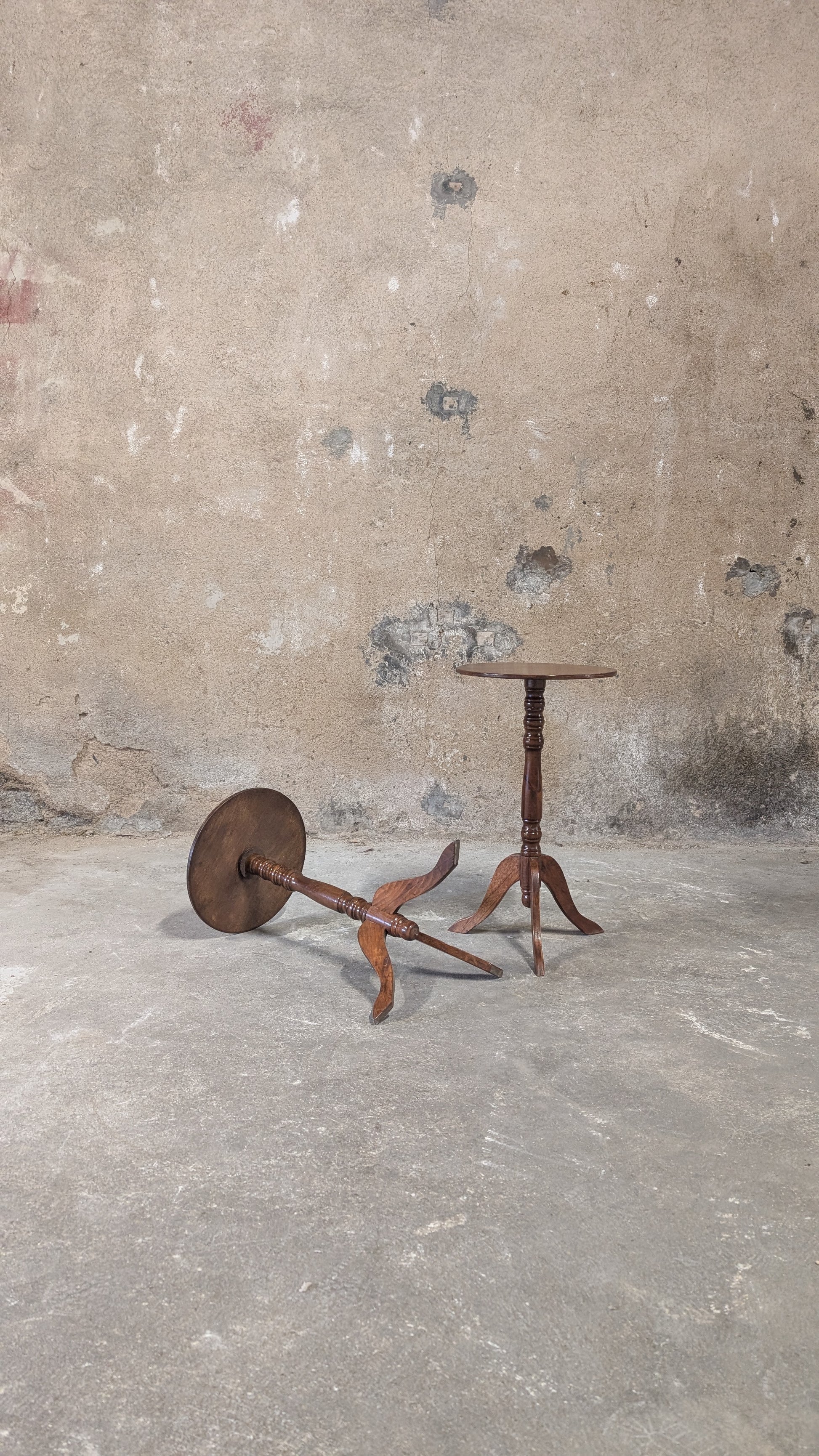 Paire de guéridons en bois, élégants et en bon état. Parfaits comme table d'appoint, supports pour plantes, lampes ou objets déco. Hauteur 53,5 cm, diamètre du plateau 29 cm.
