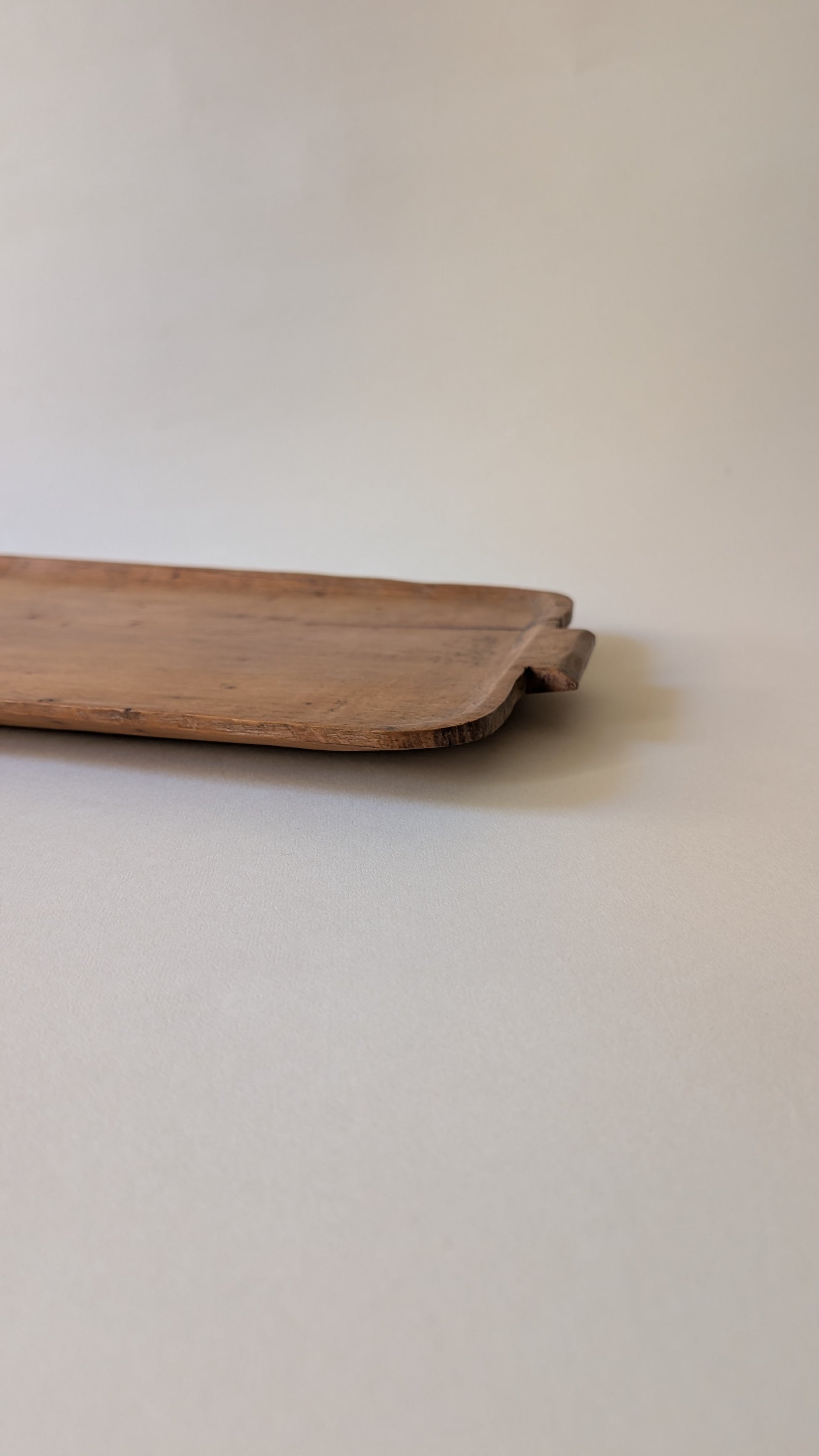Ce plateau rectangulaire en bois massif présente une belle finition naturelle et deux petites poignées sculptées à chaque extrémité. Idéal pour servir des boissons, un petit-déjeuner au lit, ou pour apporter une touche rustique et chaleureuse à votre décoration intérieure.