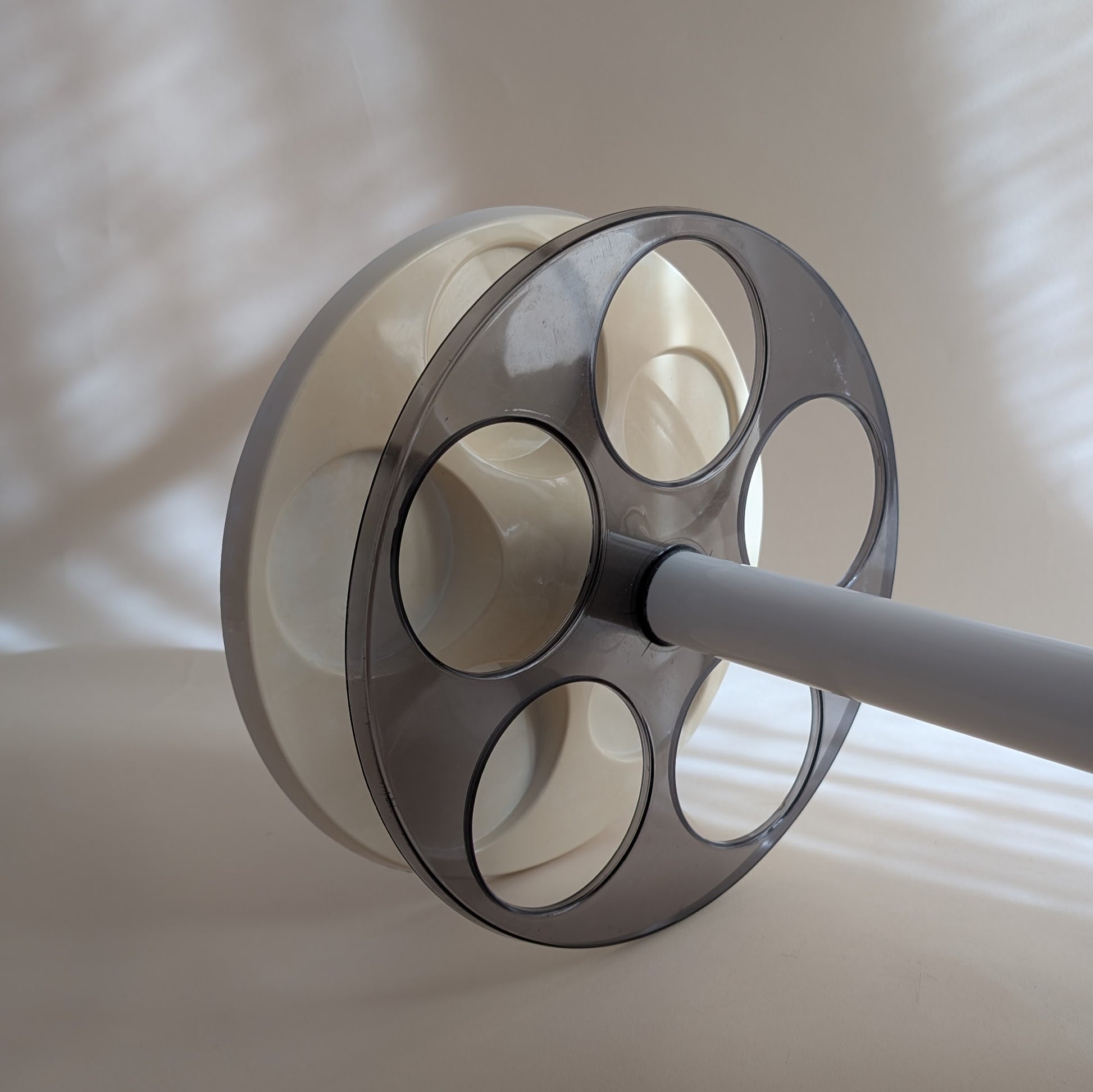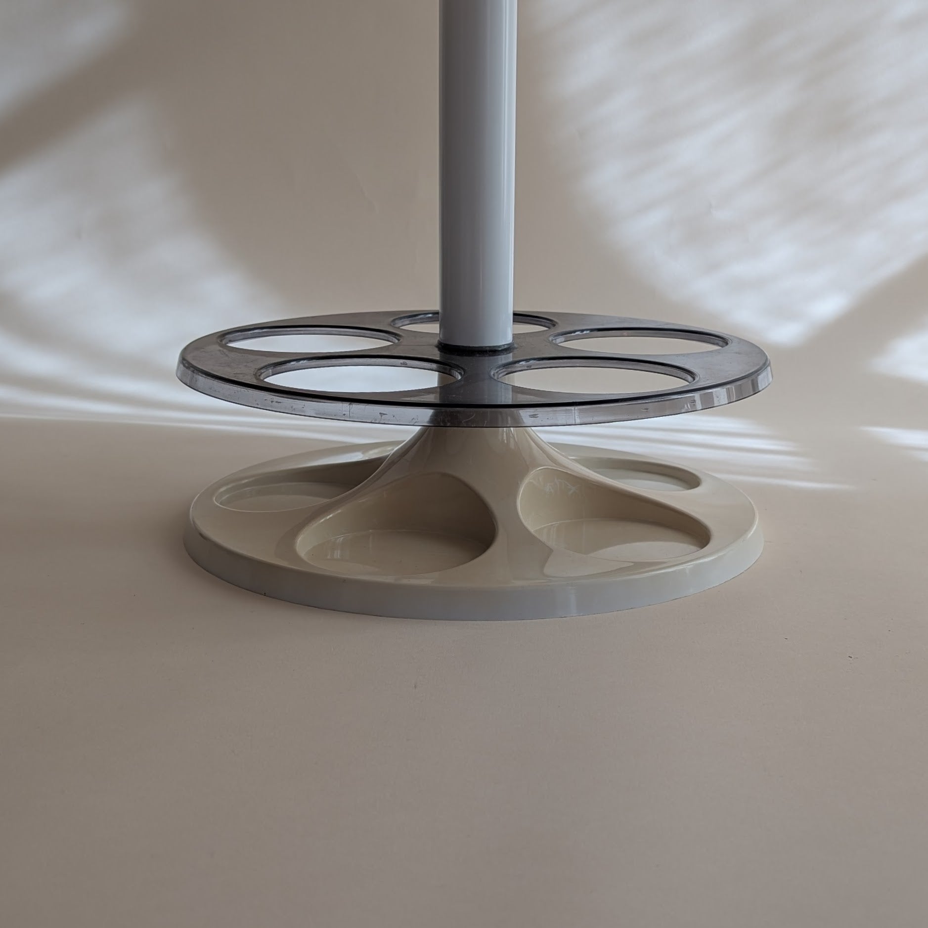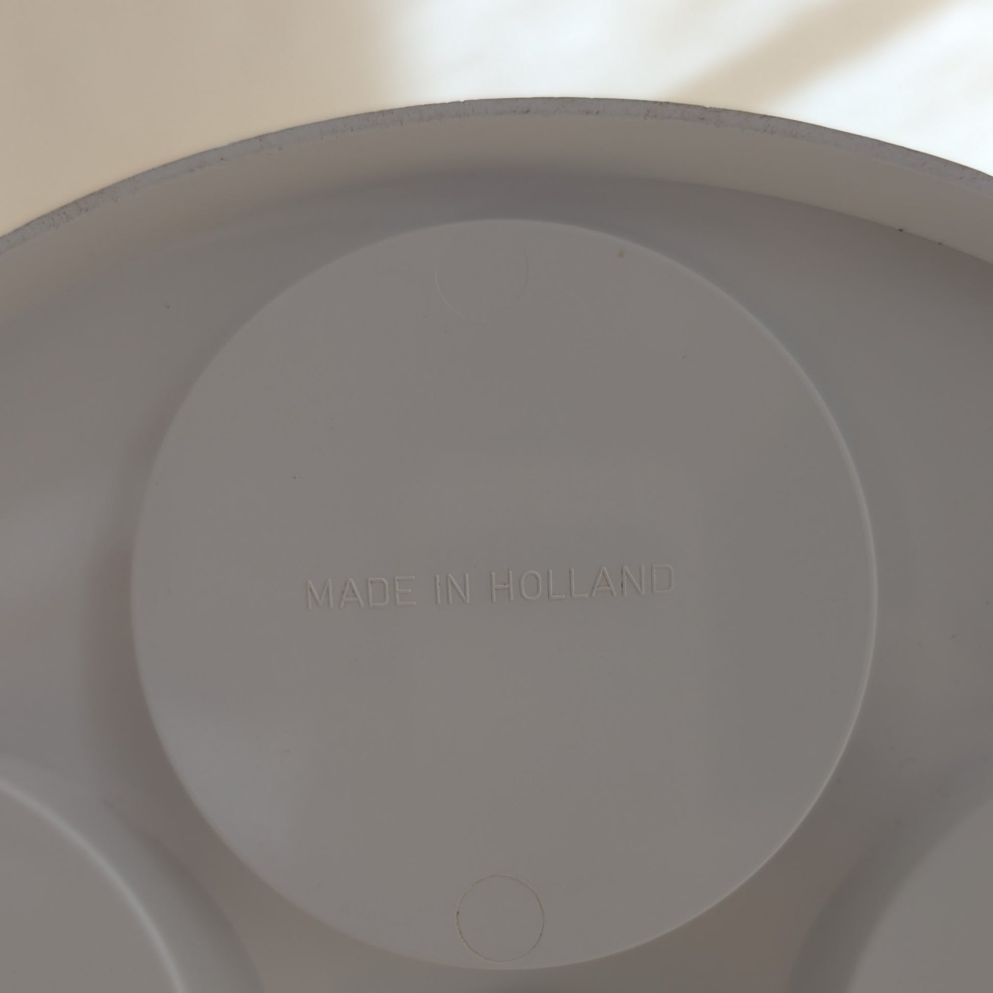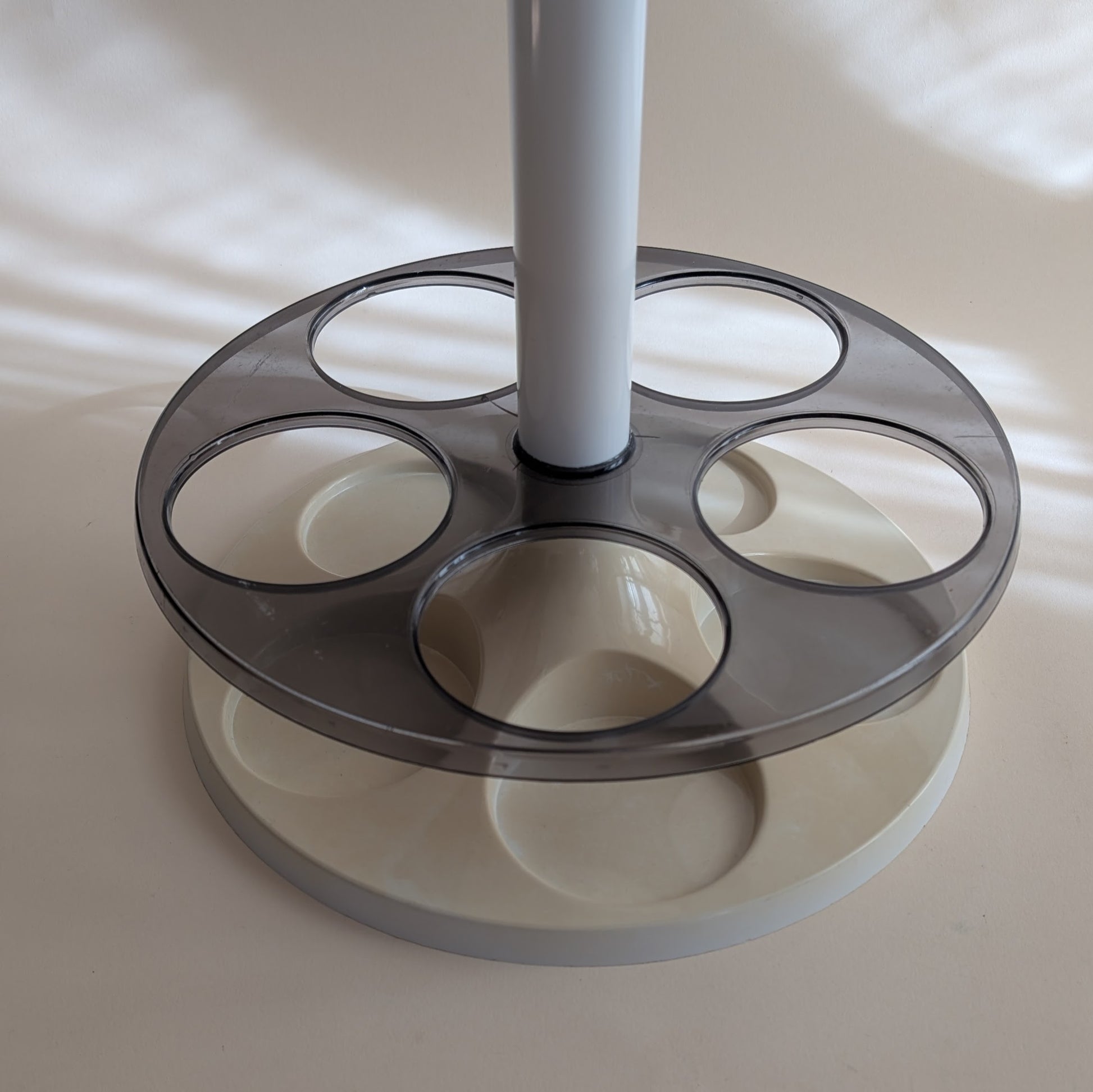 Porte-bouteille iconique des années 70. Fabriqué au Pays Bas. État usagé, petite fissure, décoloration (voir photos). Matière plastique.
