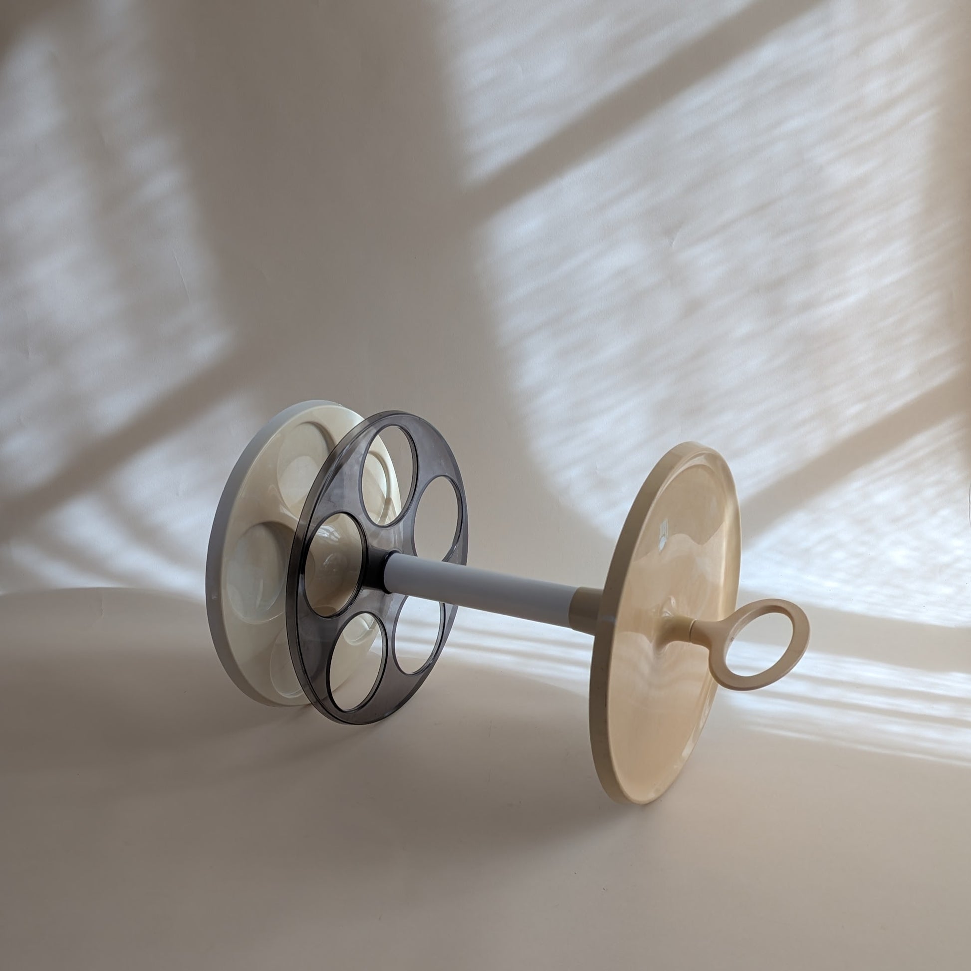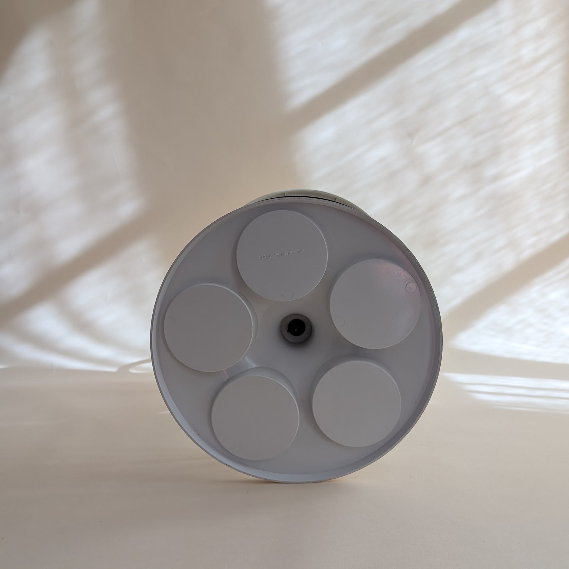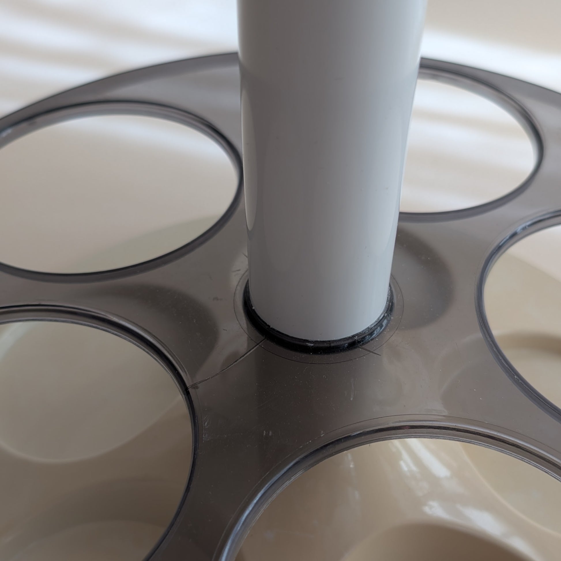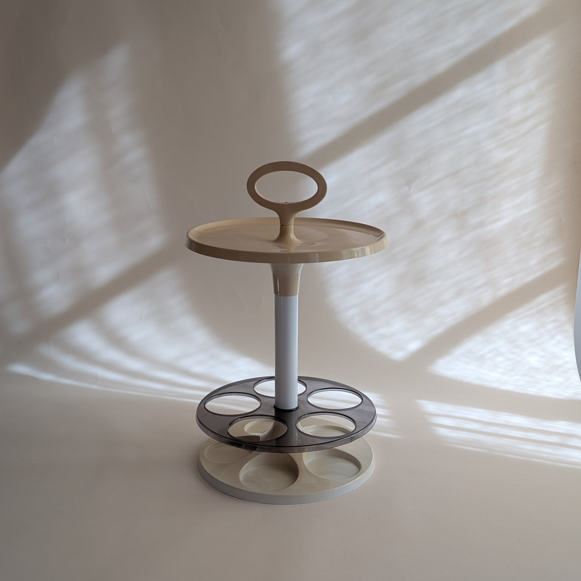 Porte-bouteille iconique des années 70. Fabriqué au Pays Bas. État usagé, petite fissure, décoloration (voir photos). Matière plastique.