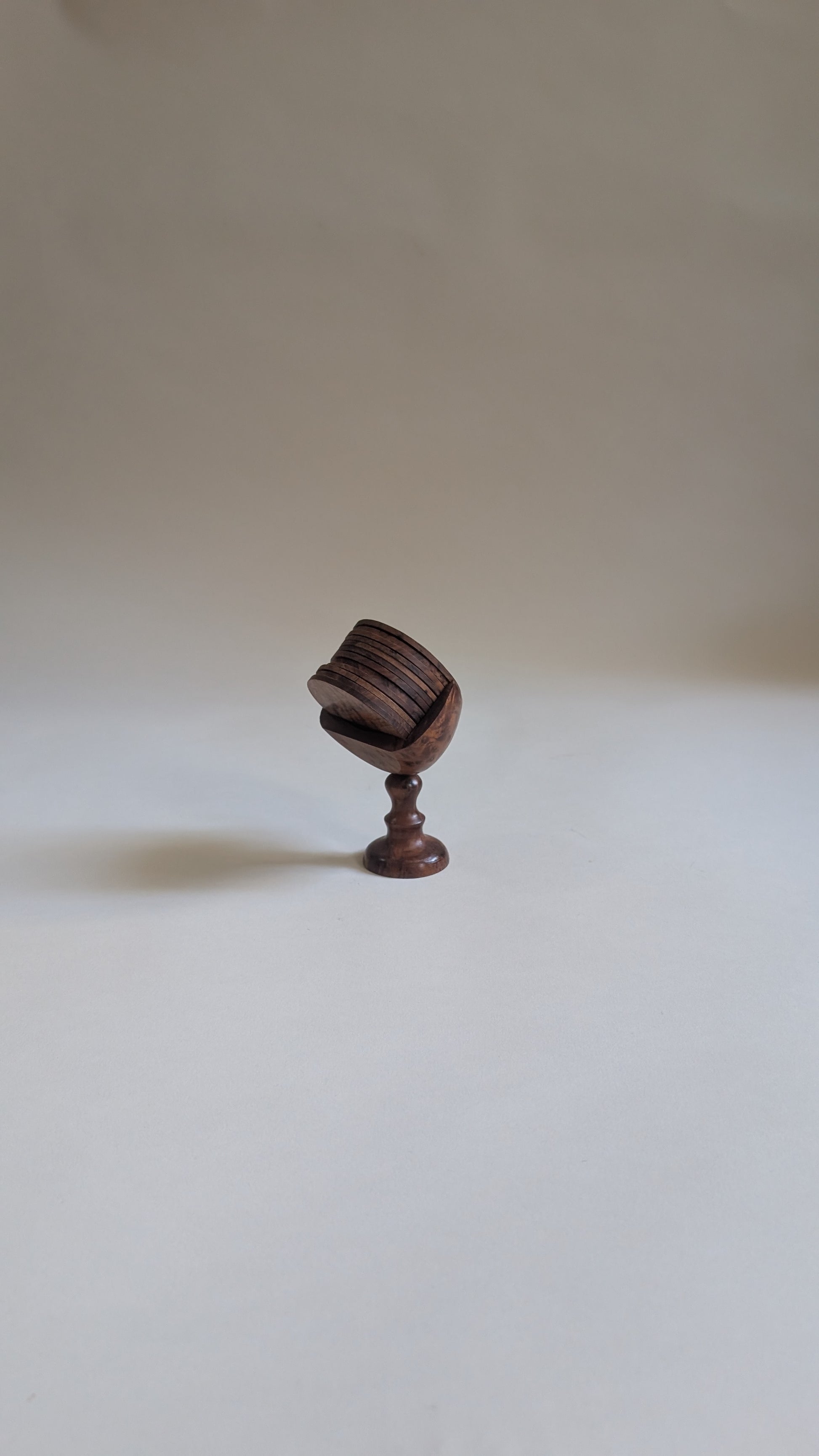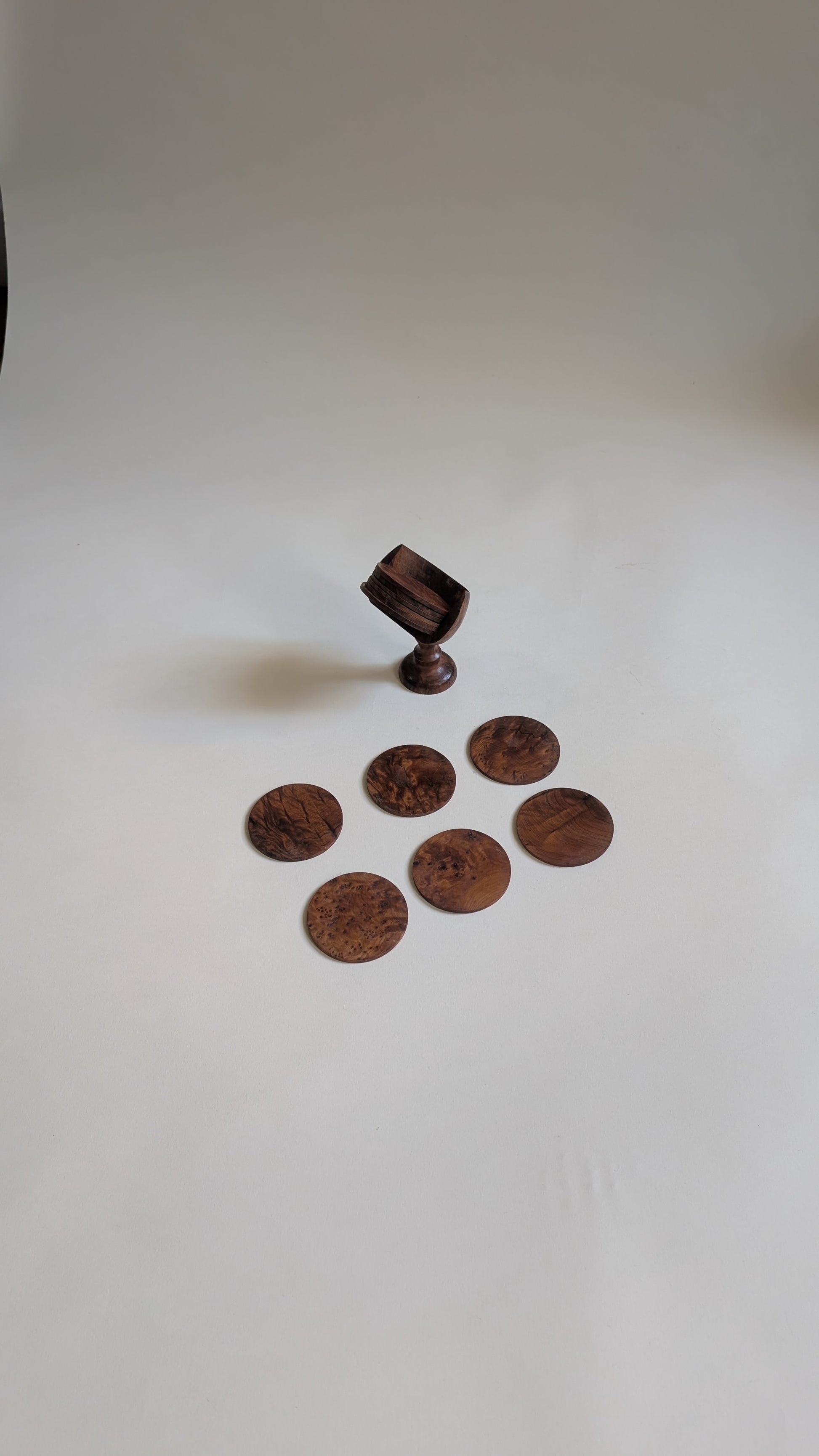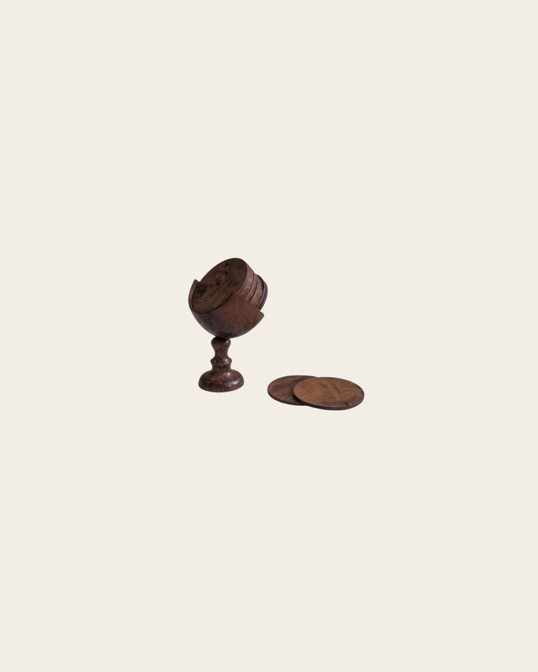 Élégant porte-sous-verres en loupe d’orme, au veinage riche et raffiné.