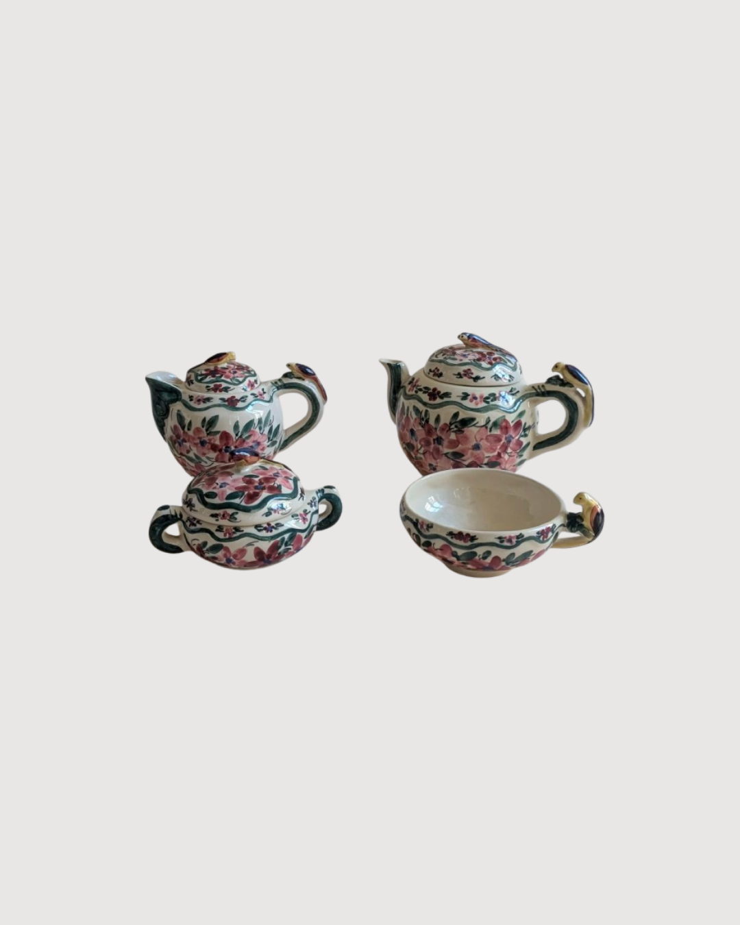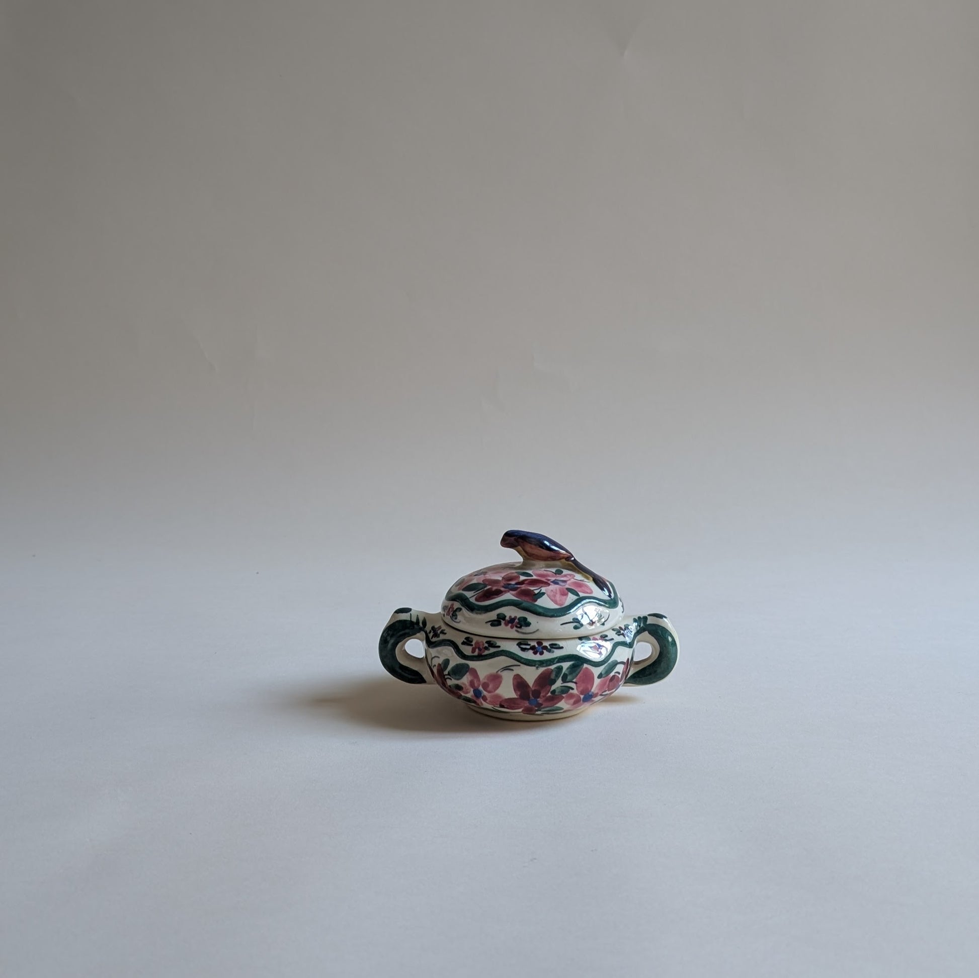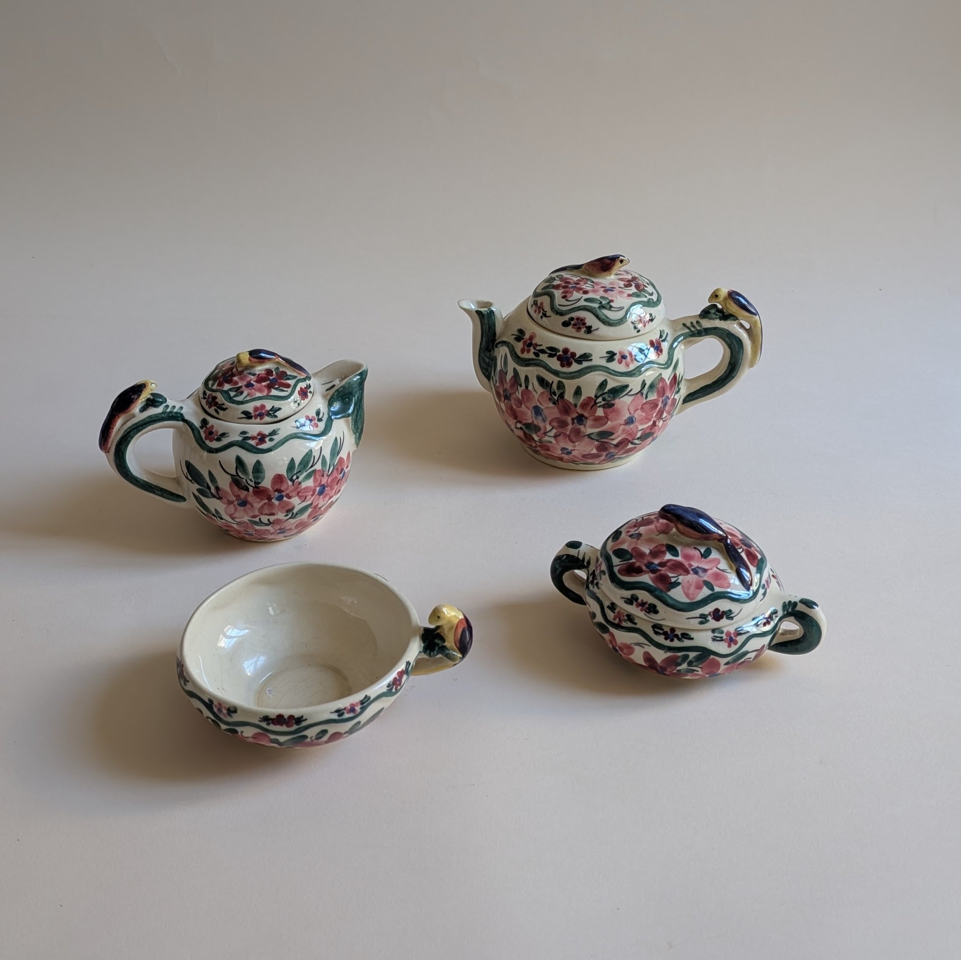 Sucrier : hauteur 9 cm, longueur de la anse au bec 15,5 cm, diamètre 11 cm.