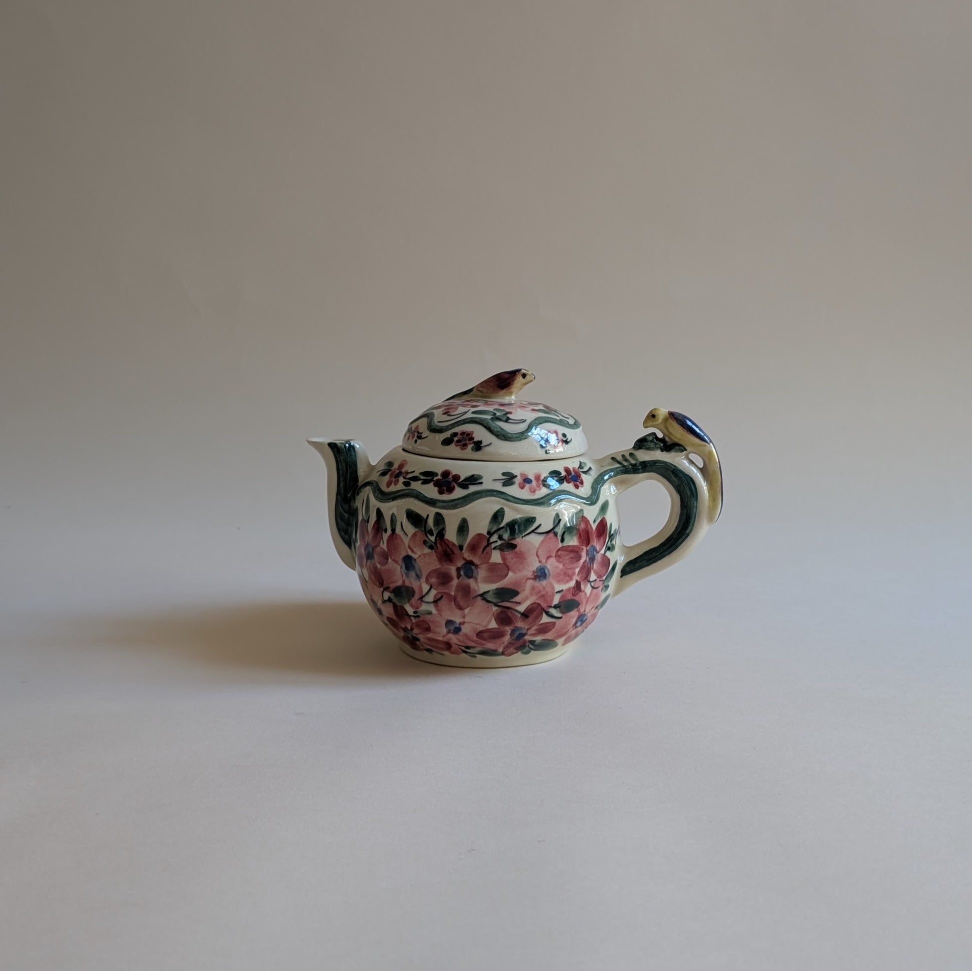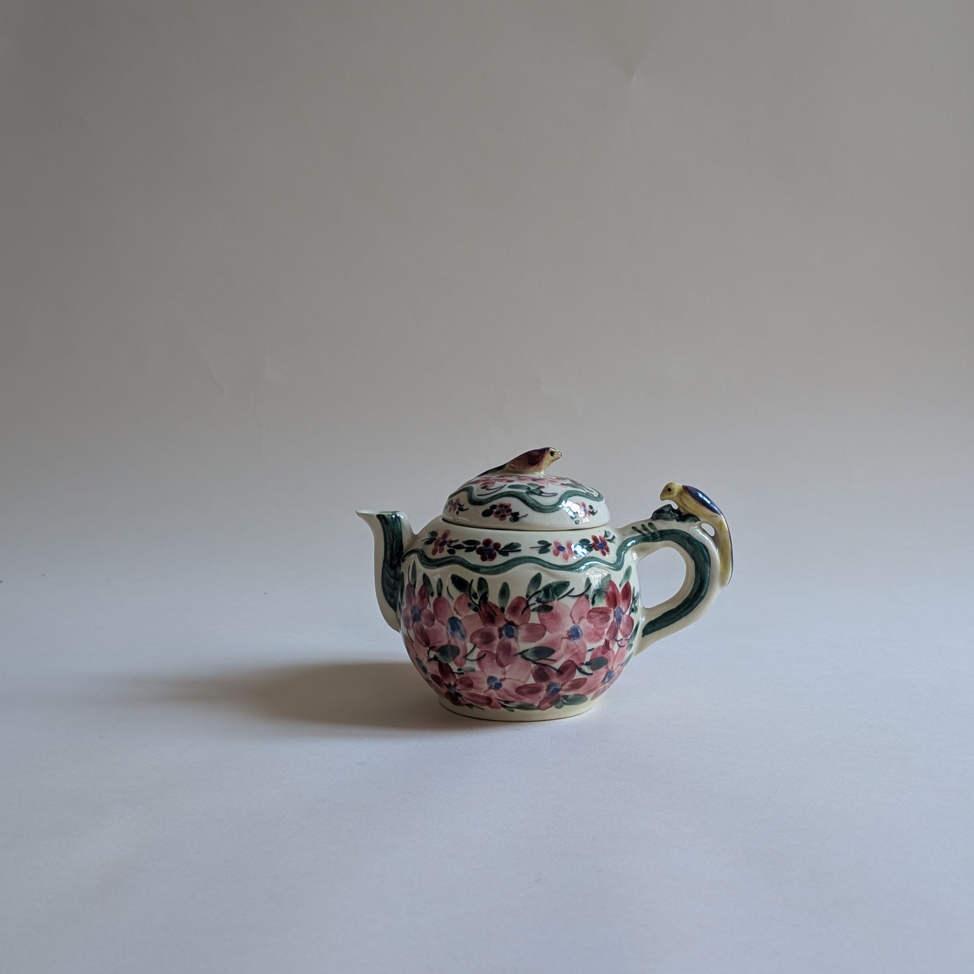 Grande théière : hauteur 14,5 cm, longueur de la anse au bec 22 cm, diamètre 13 cm. Petite théière : hauteur 12 cm, longueur de la anse au bec 17 cm, diamètre 11 cm.