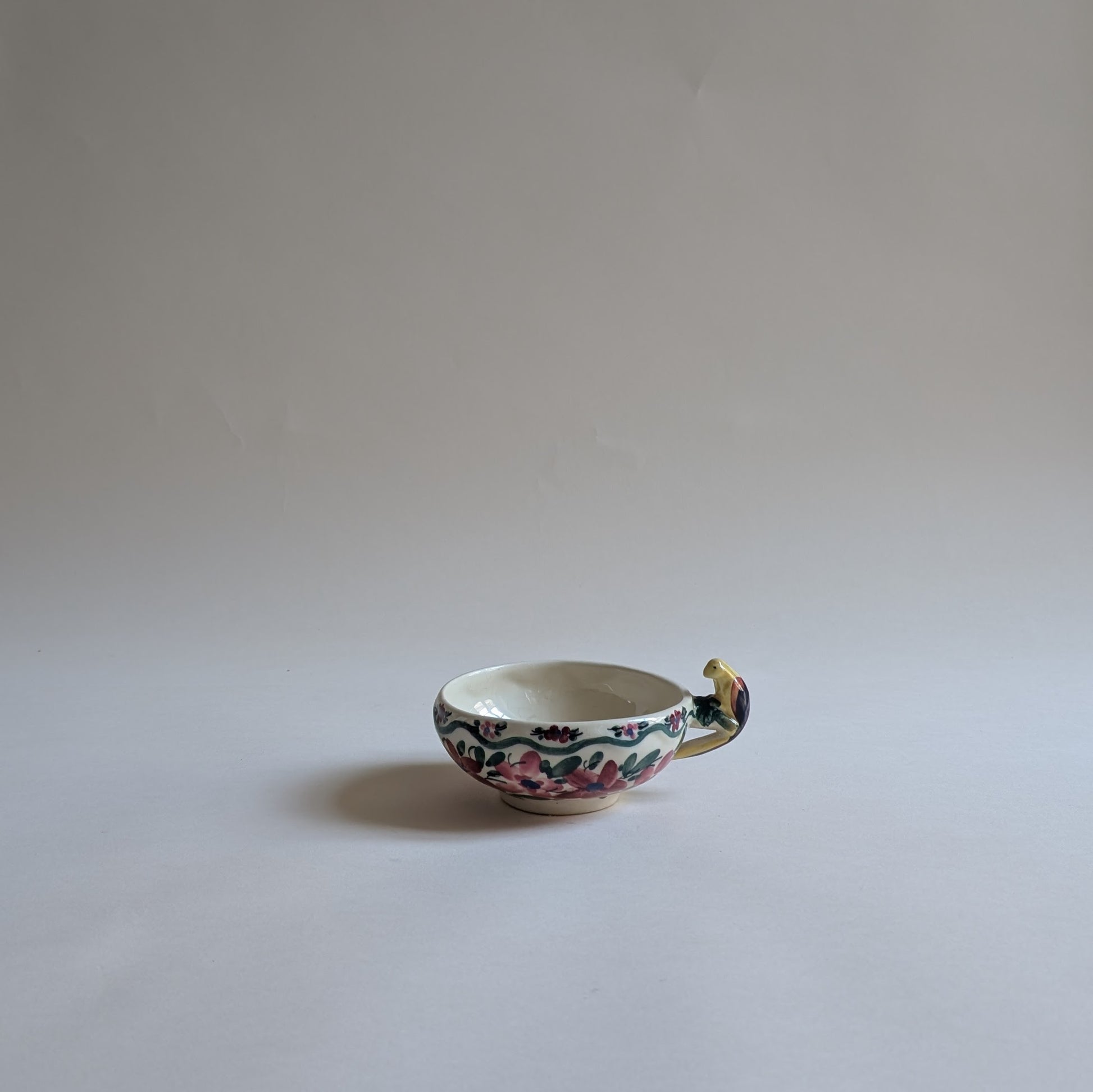 Coupelle : hauteur 7 cm, longueur de la anse au bec 15,5 cm, diamètre 12 cm.