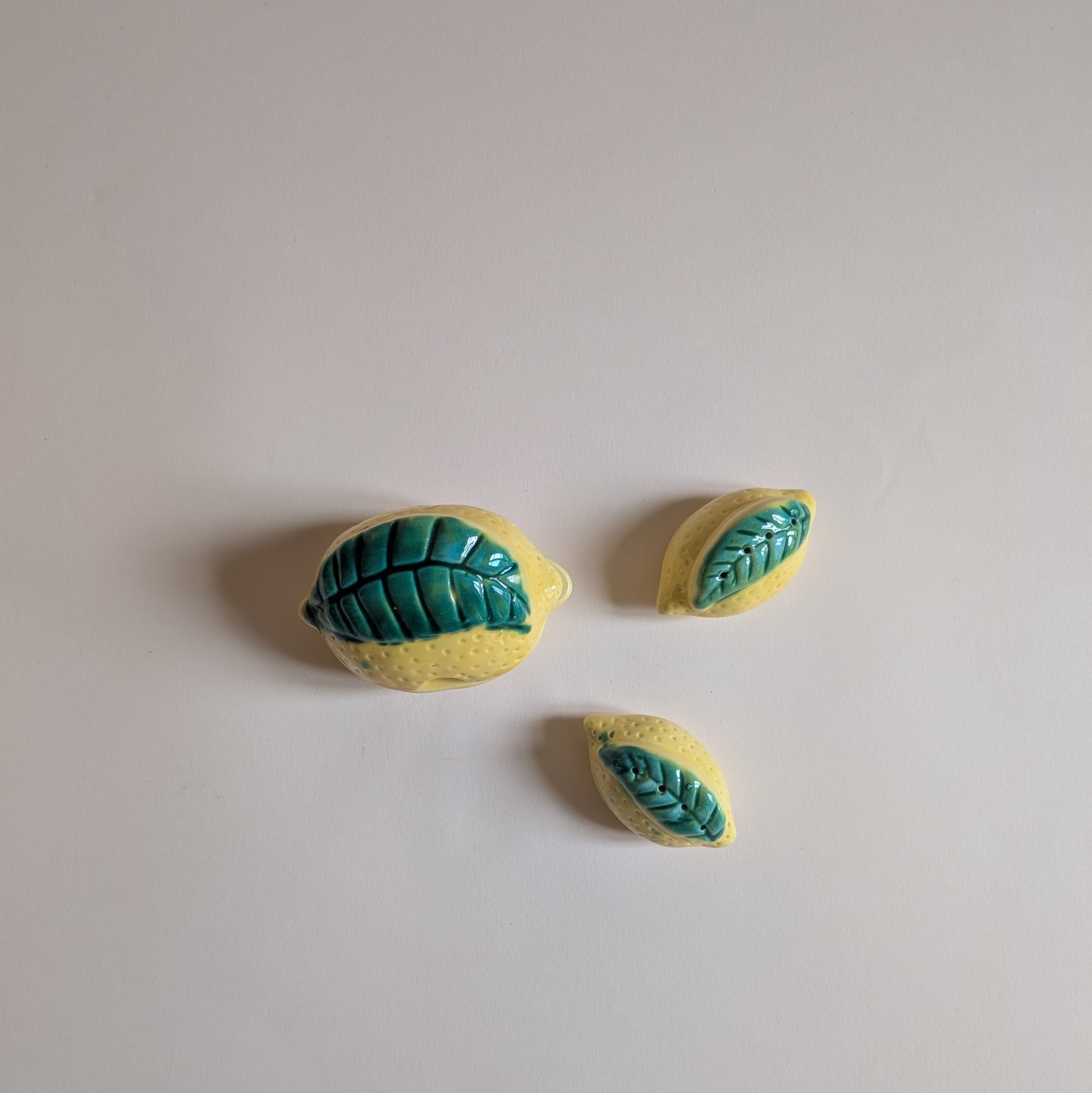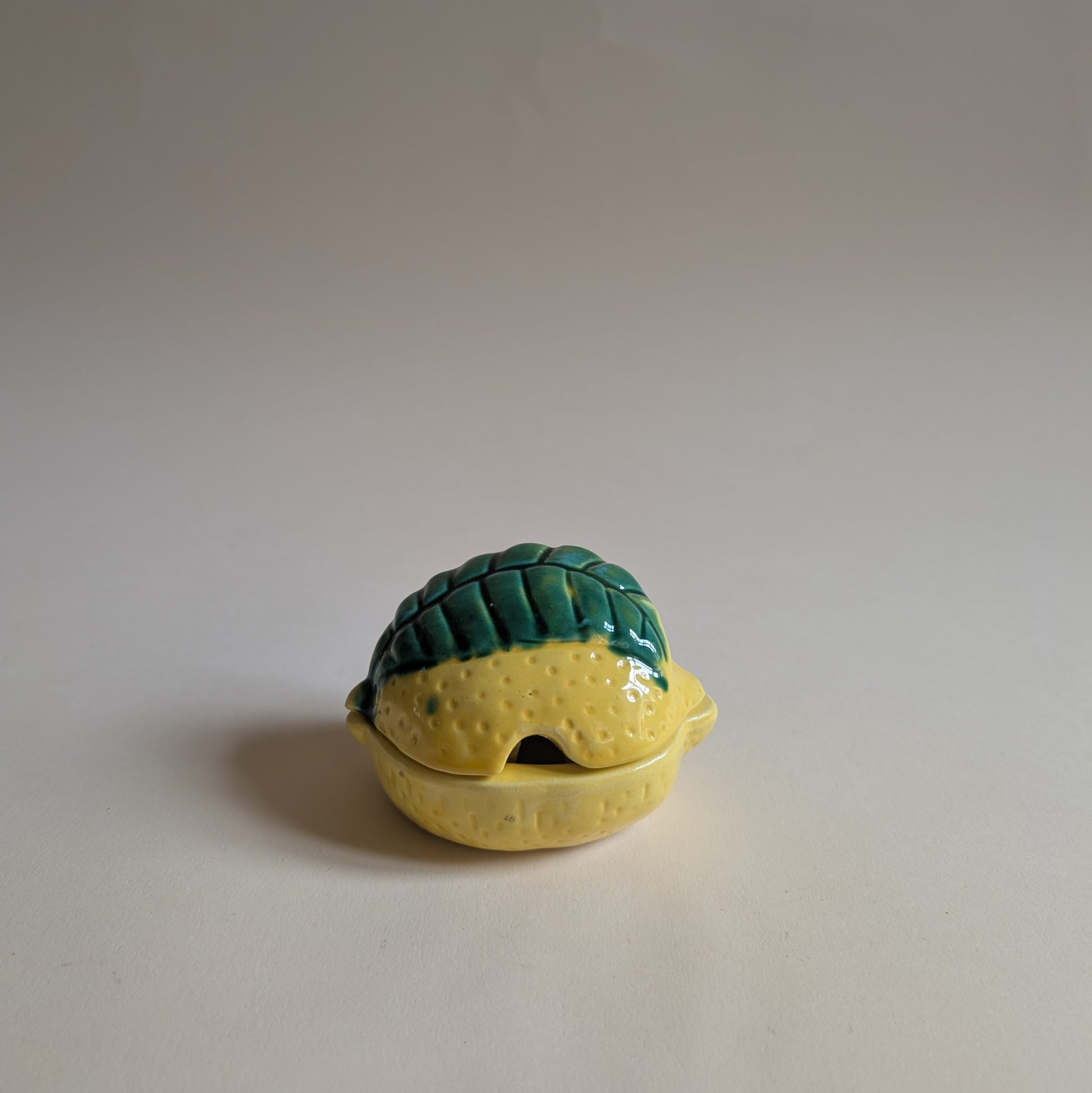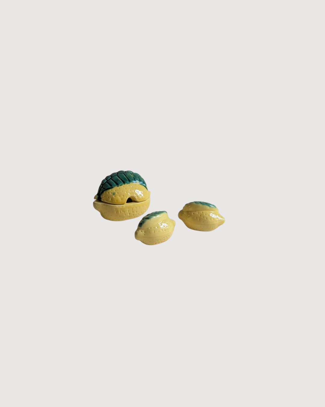 Set barbotine citron, saucière, poivrier et salière. En très bon état.
