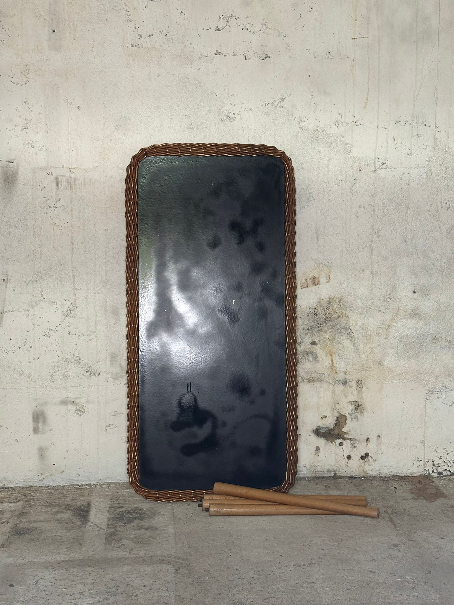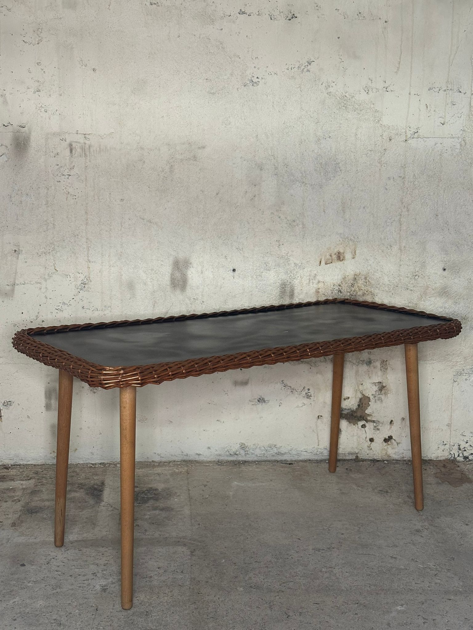 Hauteur 51 cm, largeur 107 cm, profondeur 52 cm, épaisseur plateau 5 cm.