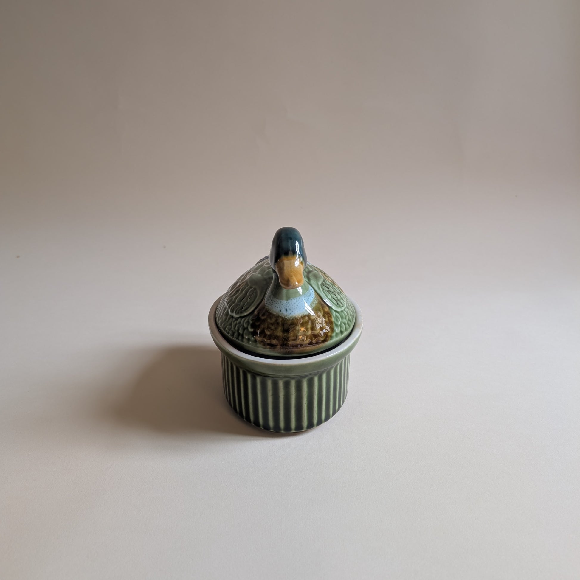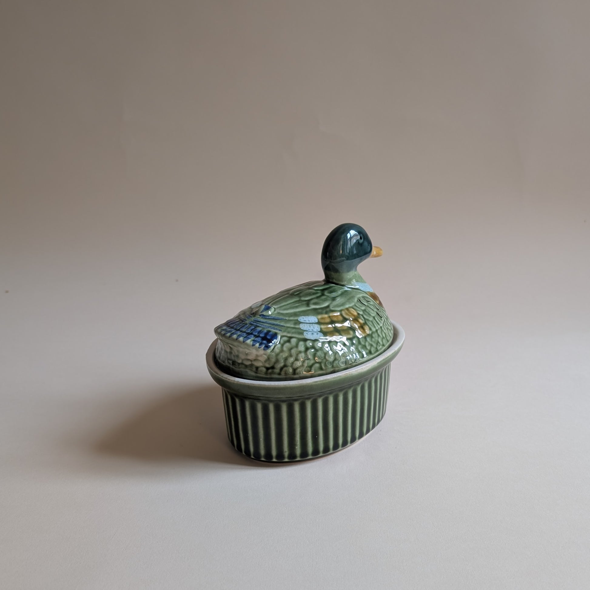 Canard : du bec à la queue 16 cm, largeur 11, 5 cm, hauteur tête 9 cm.