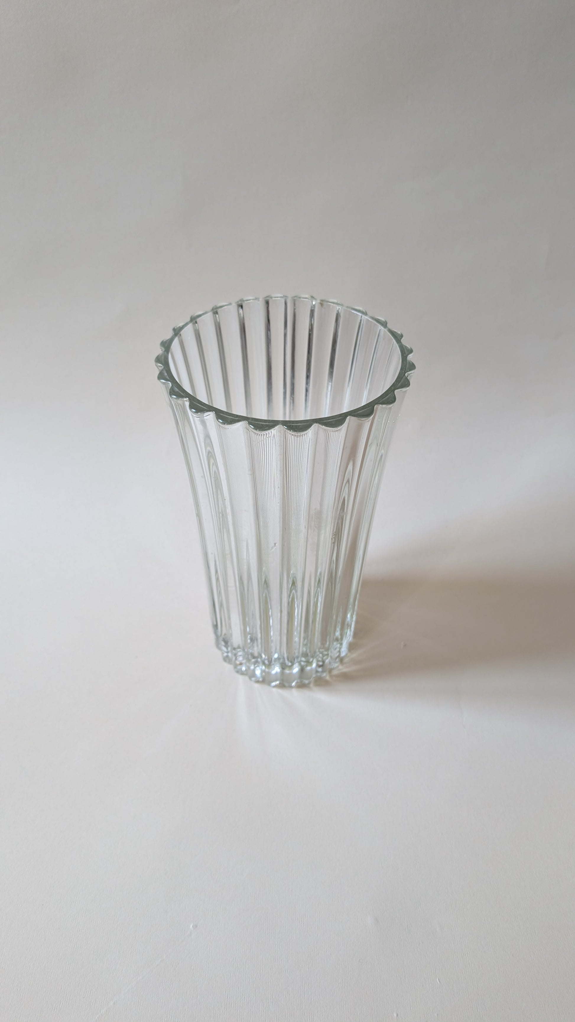 Vase en verre épais doté d’un relief vertical qui lui donne une forme sobre et structurée. Avec ses 25 cm de hauteur et 14,5 cm de diamètre, il convient bien pour des bouquets classiques ou des branches décoratives. Son poids de 1,8 kg lui assure une bonne stabilité. Idéal pour un usage quotidien ou comme élément décoratif discret.