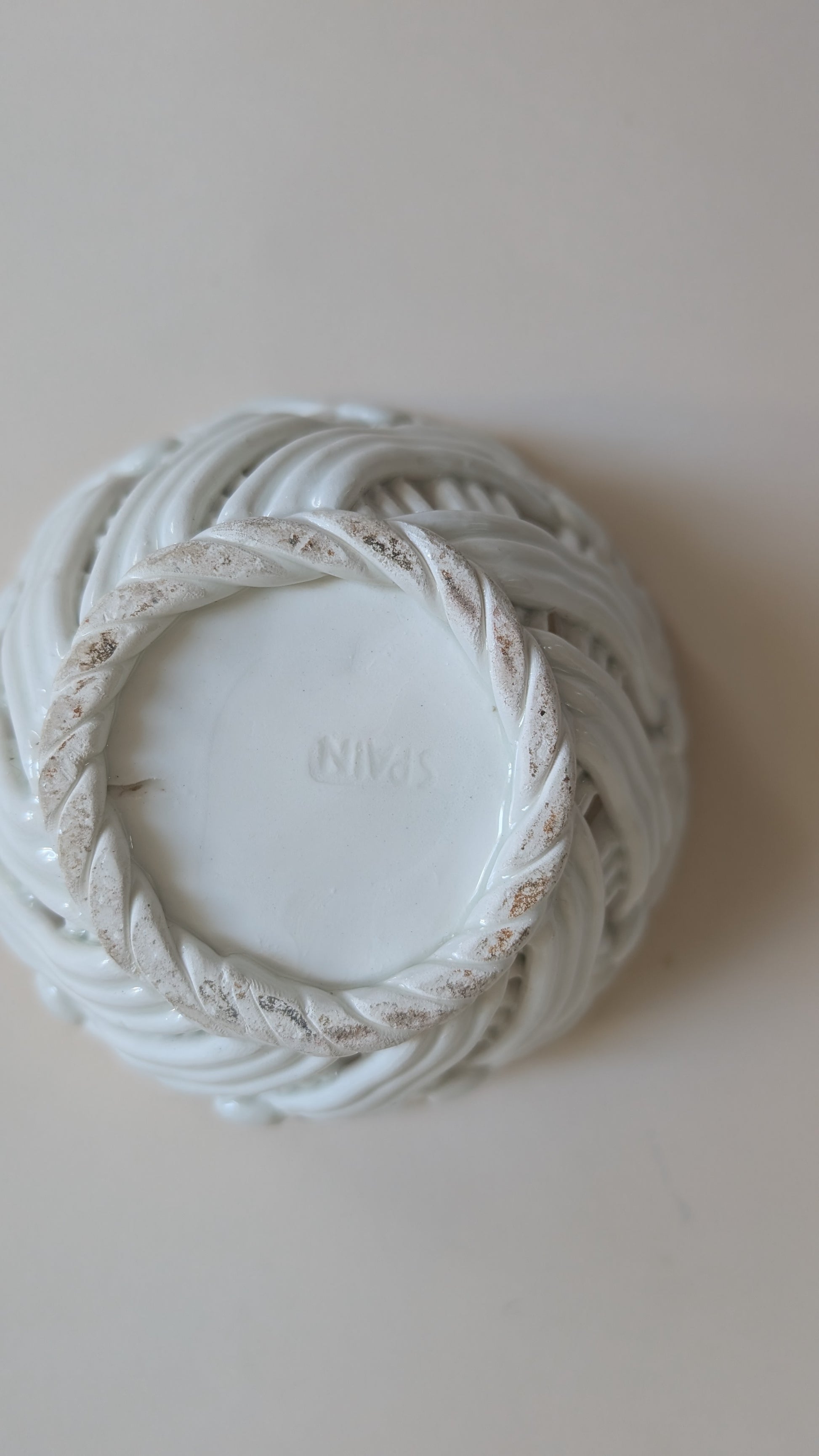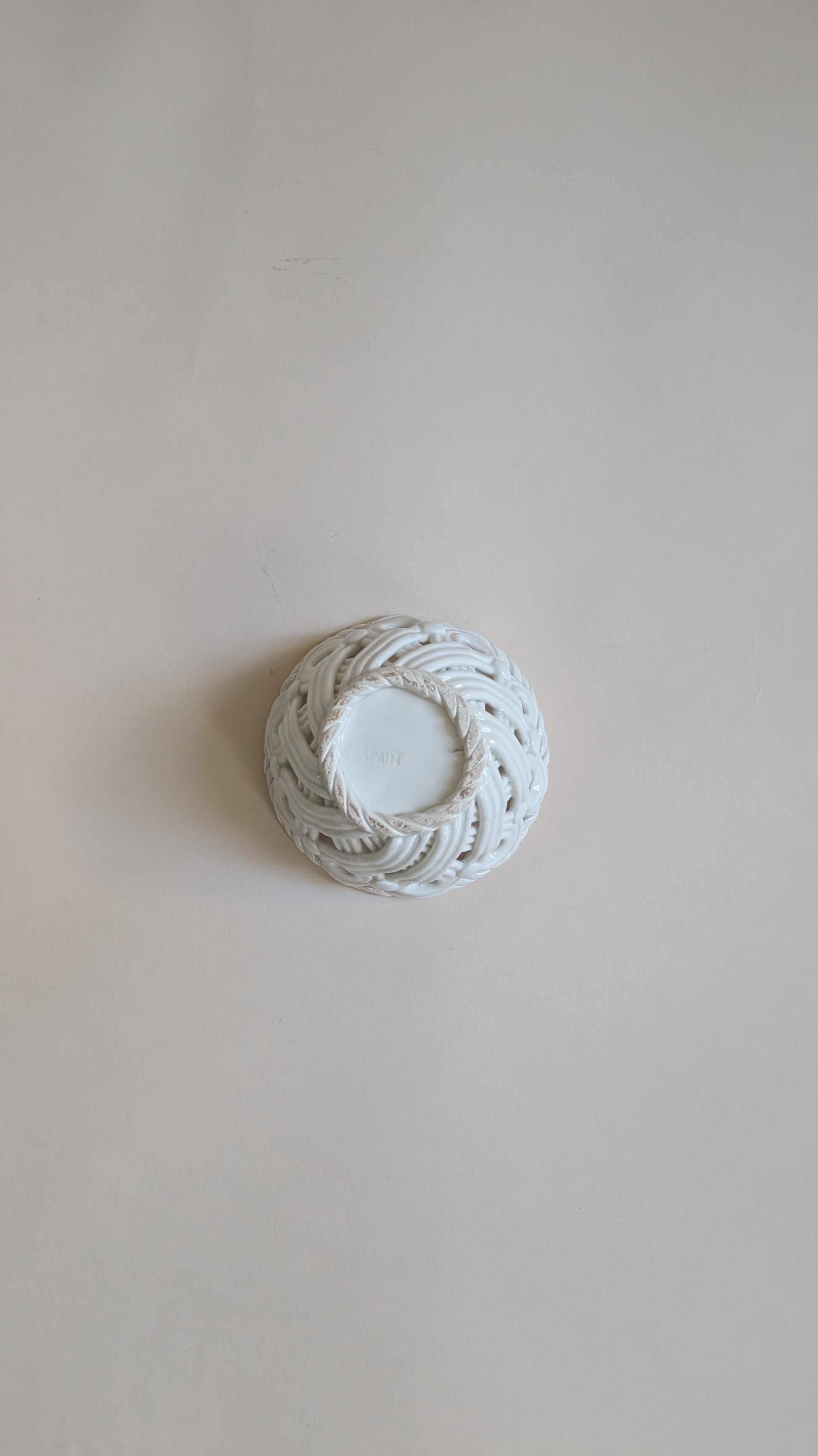 Vide-poche en céramique au motif tressé, fabriqué en Espagne. À la fois pratique et décoratif, il apporte une touche artisanale et raffinée à votre intérieur. Parfait sur une console, une table d’entrée ou un bureau, il accueille clés, bijoux ou petits objets du quotidien.